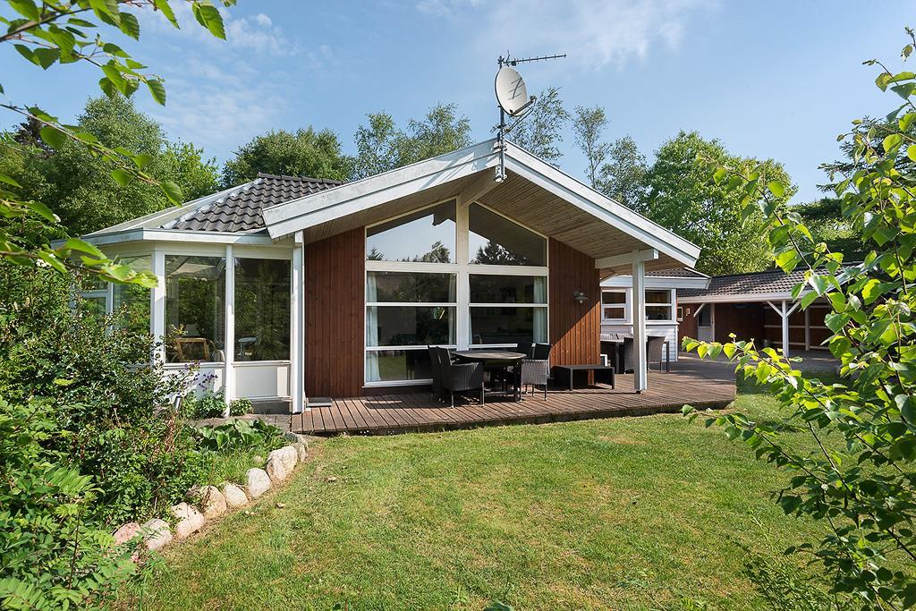 I de skønne solskinstimer kan I sætte jer ud på den åbne terrasse og nyde hyggelige stunder sammen. I kan tilberede gode måltider og tage et kig ud i havens naturskønne anlæg. Skulle vejrguderne have andre planer, så kan I sætte jer under halvtaget, og stadig nyde duften af regnen der falder fra oven. Tag morgenkaffen med ud i morgentimerne, og nyd freden, og fuglene der synger deres morgensang.