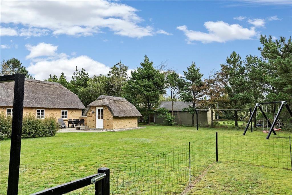 Træd ud på den hyggelige terrasse og lad aftensolen skinne ned, mens I tænder op i grillen. Nyd de lange sommeraftener med gode samtaler og duften af lækre grillretter, der spreder sig over grunden. For hundeejere er der en lille indhegning i haven, så jeres firbenede ven kan nyde friheden uden at være i snor. På grunden er der masser af skønne spots, hvor I kan finde læ og nyde solens varme stråler. Har I børn med, er der masser af sjove aktiviteter, fra sandkassen og gyngestativet til en tur rundt om huset på den flisebelagte gangsti – her er der noget for alle.