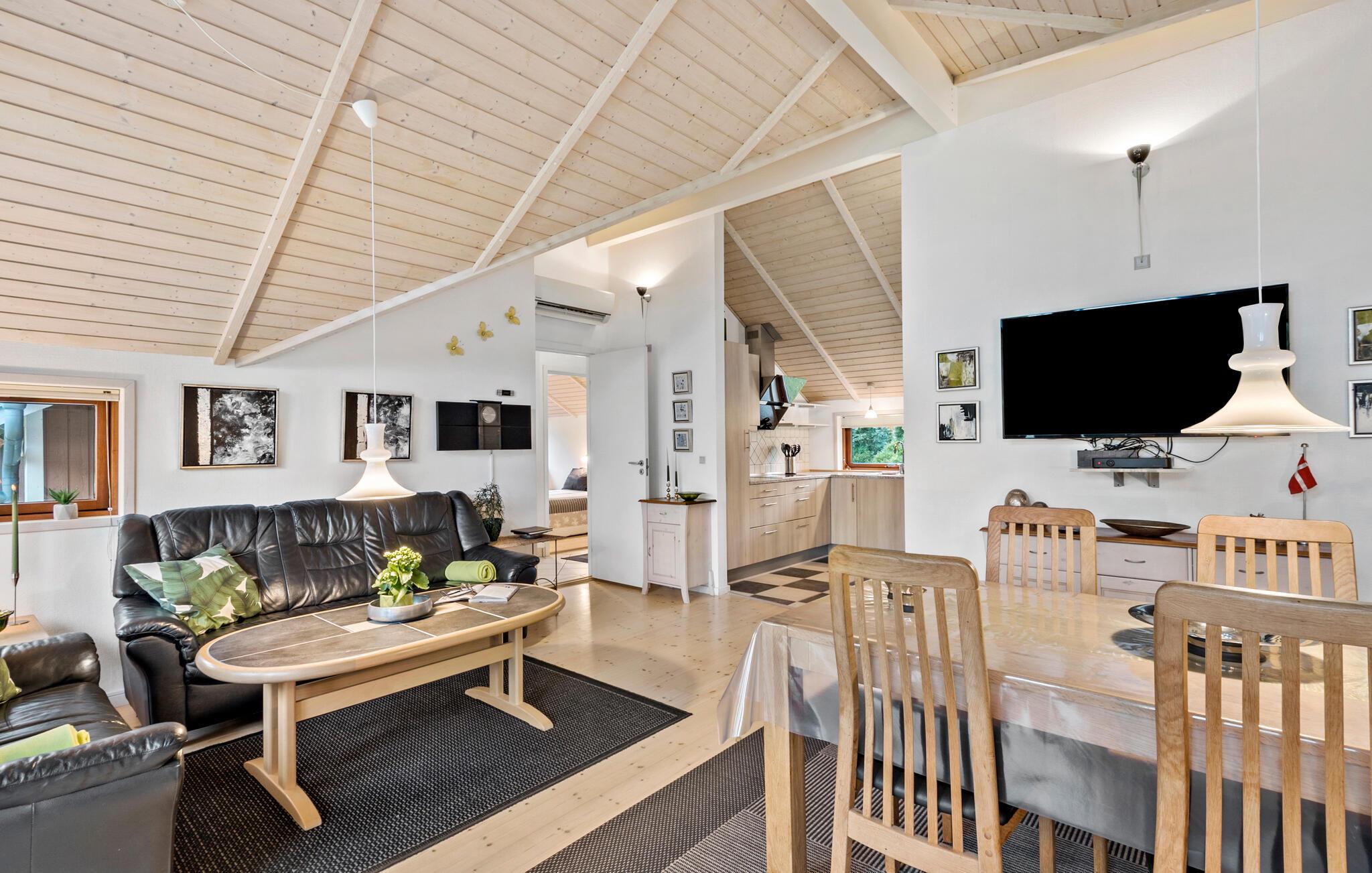 Dette klassiske og familievenlige feriehus er noget særligt med sine lyse rum og den hyggelige stemning fra en brændeovn, der skaber varme og komfort på kølige aftener. Den rummelige terrasse indbyder til grill og fælles måltider, mens den store have giver masser af plads til, at jeres børn kan lege frit. Her finder I alt, hvad I skal bruge til en afslappende ferie med familien.