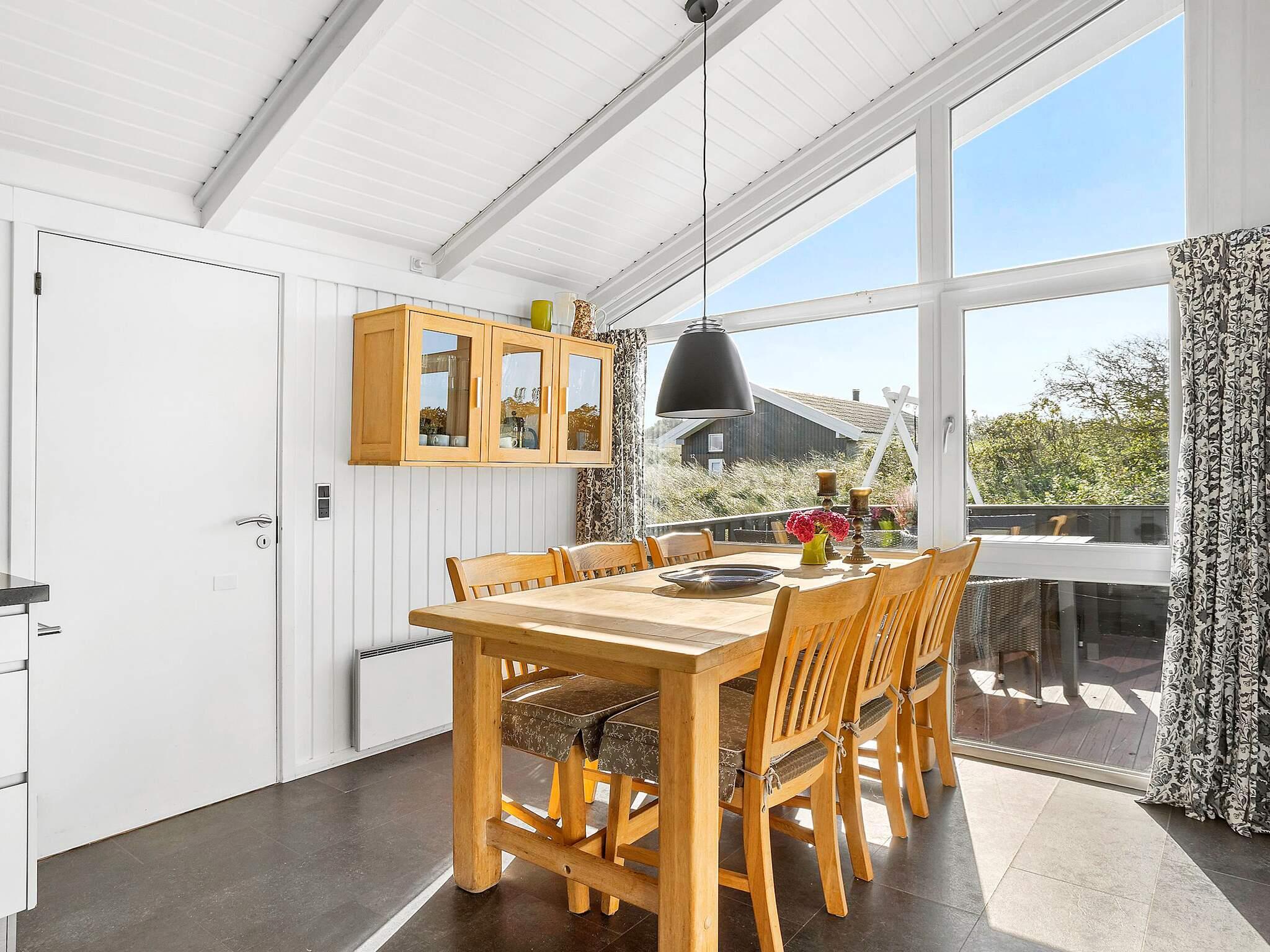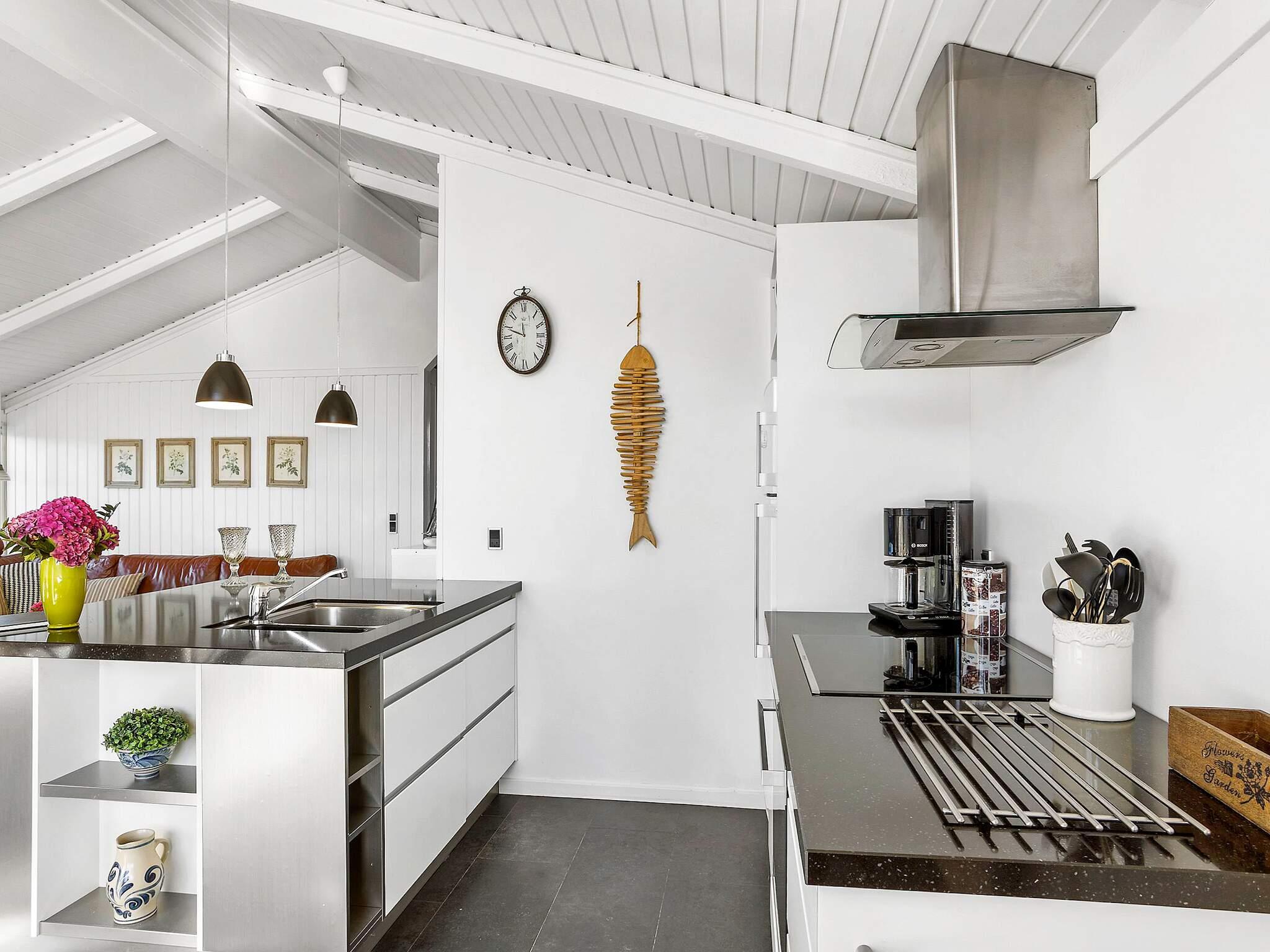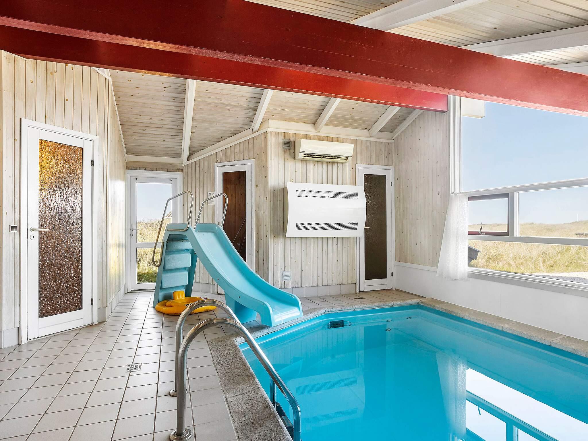 Huset har køkken, badeværelser, senge (heraf to med elevation) og udsmykning fra efteråret 2012. Der er et SmartTv i huset. Indretningen er i moderne dansk sommerhusstil med køkken/stue i åben forbindelse, tre soveværelser, hems, to badeværelser, swimmingpool med rutchebane, spabad, sauna samt terrasse der sikrer det bedst mulige lysindfald dagen igennem, således at rummene fremtræder lyse og venlige. Ejeren har med sikker hånd og god sans for kvalitet afstemt farver og møblement, således at ethvert ophold i huset bliver behageligt. Det ene værelse er udstyret med tv til egen medbragt spillekonsol eller dvd-afspiller.