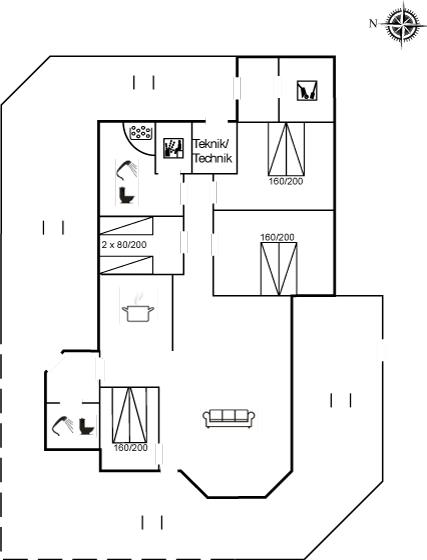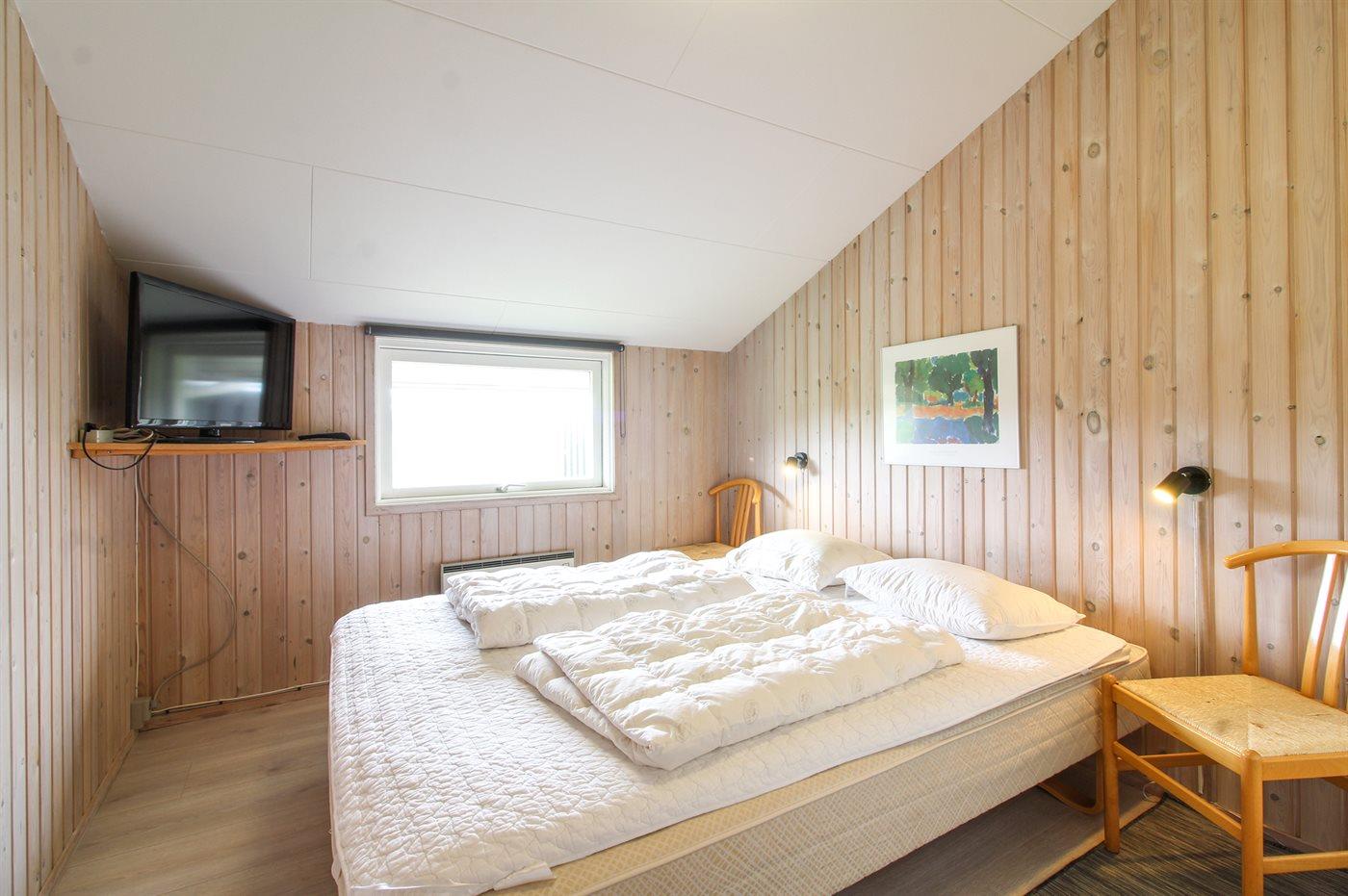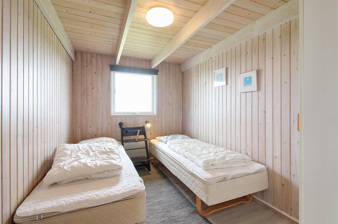 Der er i alt 4 soveværelser. Sovepladserne fordeler sig på: 4 sovepladser i dobbeltsenge. 4 sovepladser i enkeltsenge. Derudover er der 1 stk. barneseng.