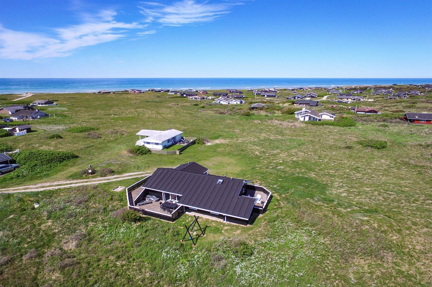Skønt sommerhus nær Vesterhavet med havudsigt, sauna, spa og stor grund på lukket vej.
