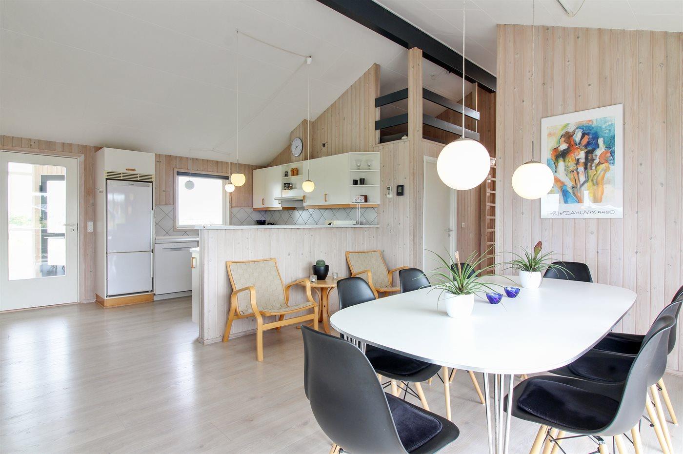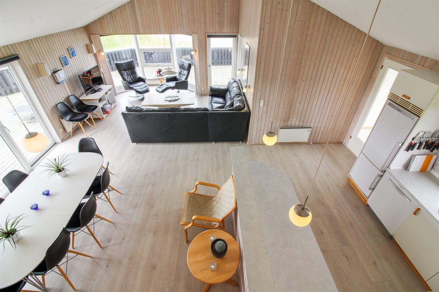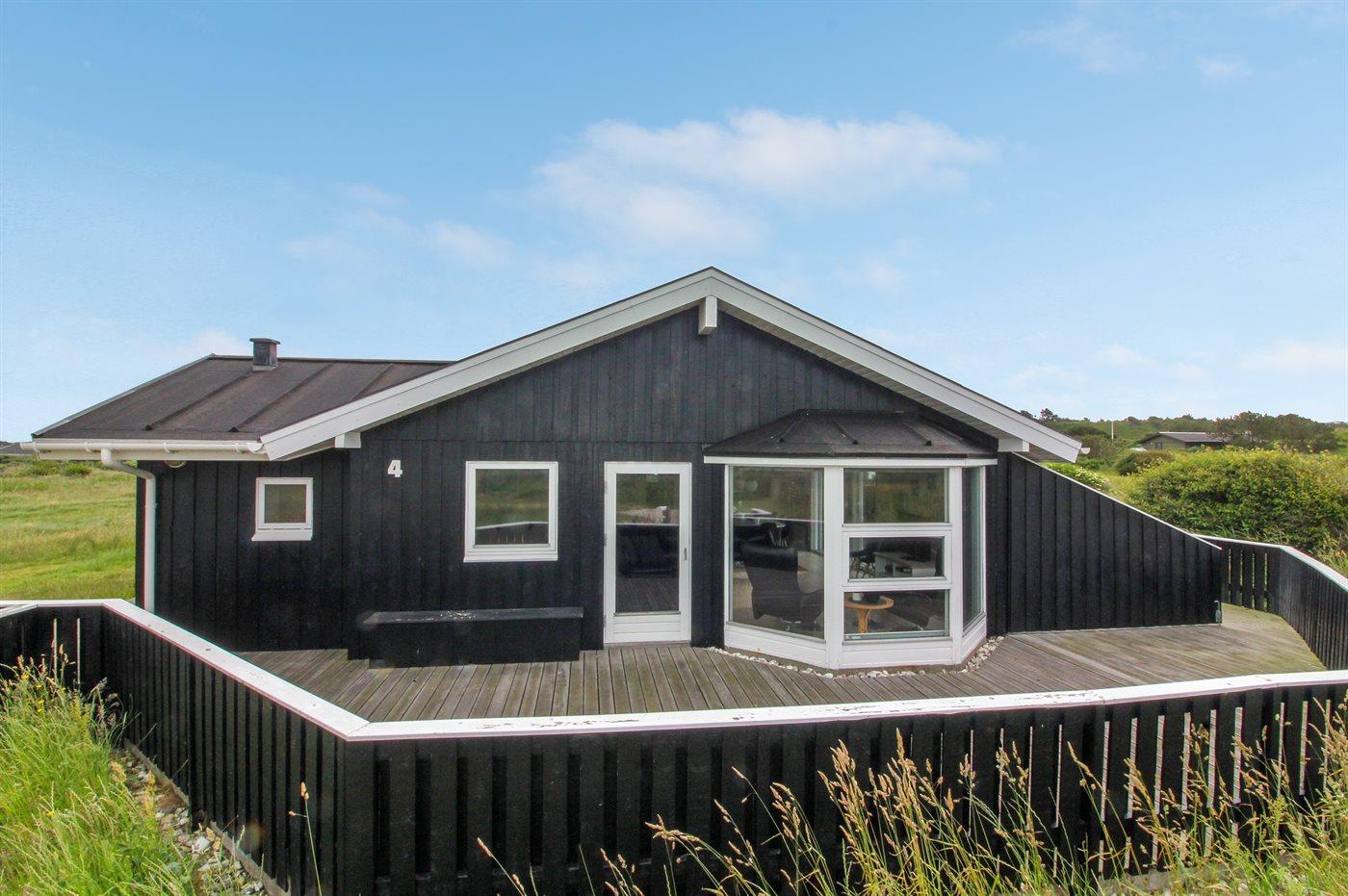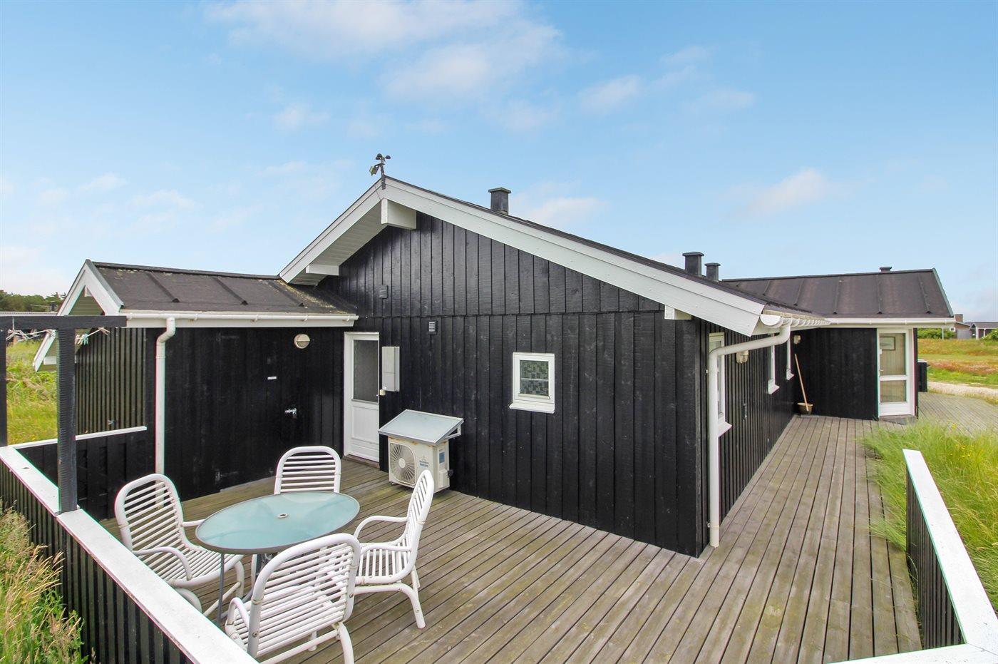 Skønt og velholdt sommerhus beliggende på en åben grund, for enden af lukket vej, nær stranden og Vesterhavet. Havet kan ses fra både hus og grund. Husets indretning er lys og venlig.