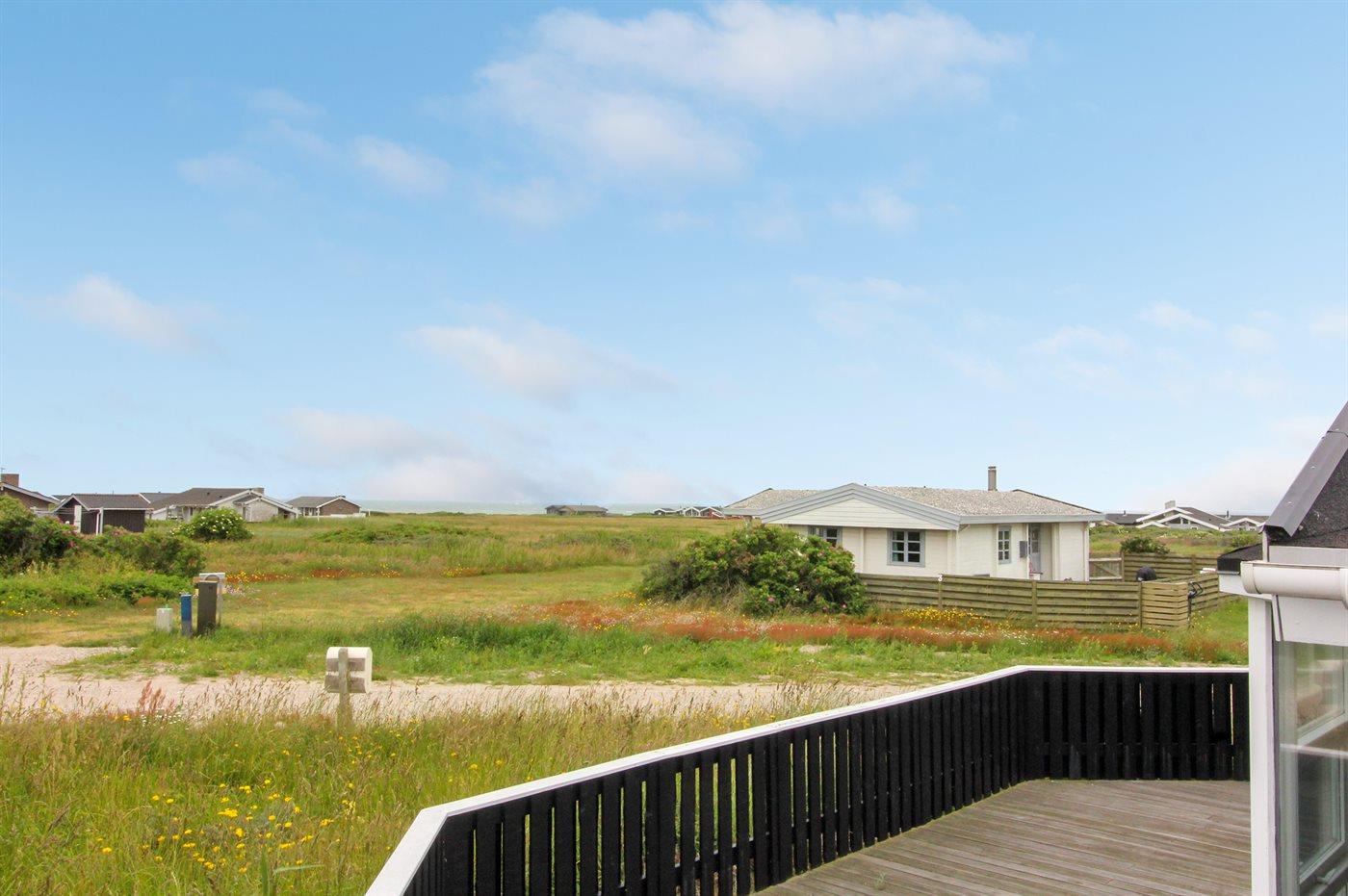 Ferieboligen er beliggende på en 1400 m² stor klitgrund. Der er 400 m til havet. Nærmeste forretning er beliggende i en afstand af 1500 m. Til ferieboligen hører 60 m² terrasseareal. Heraf i alt 30 m² lukket terrasse. Der er redskabsrum. Gynge. Sandkasse. Parkering ved ferieboligen.