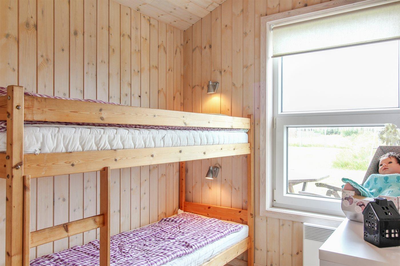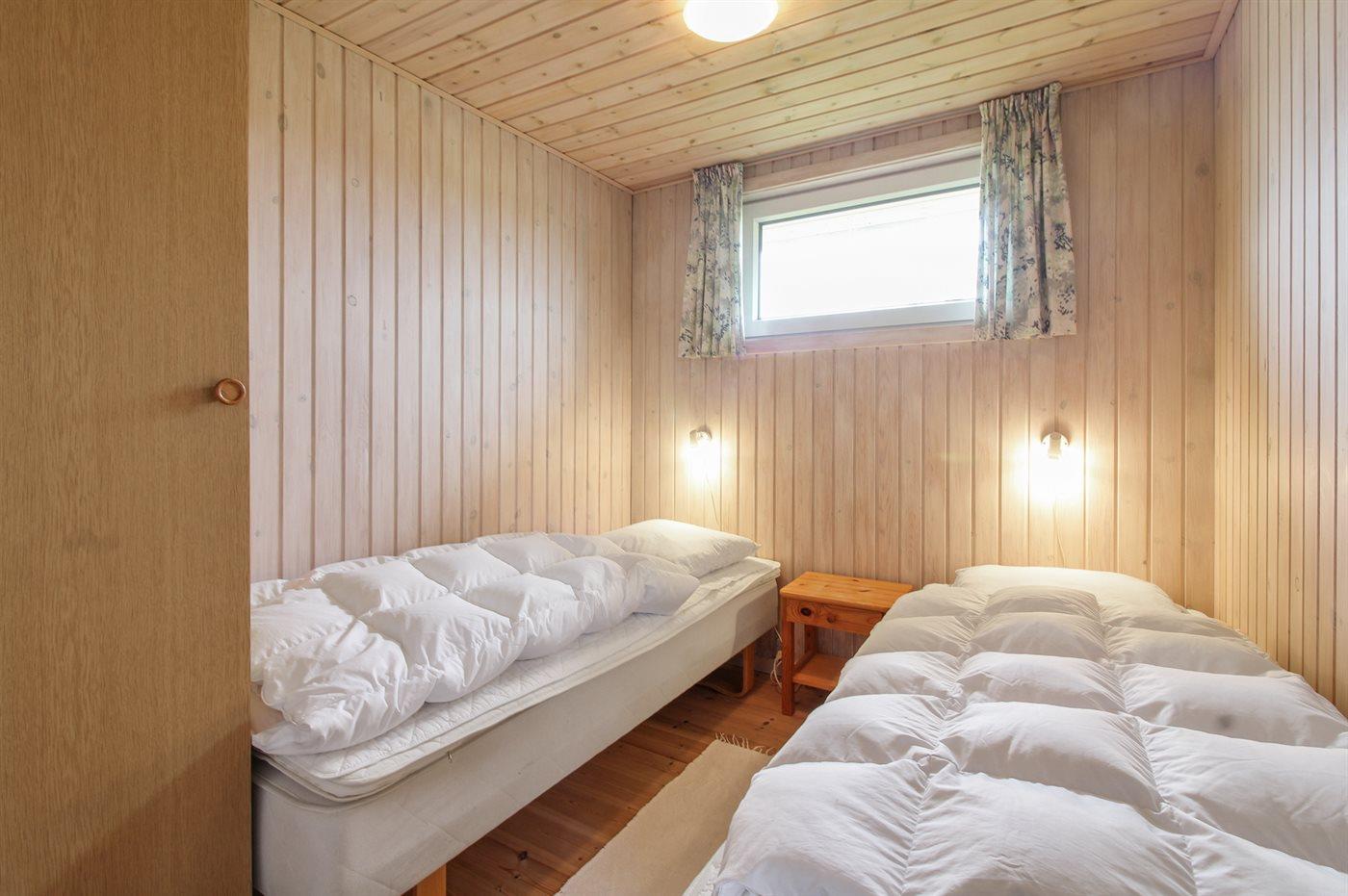Der er i alt 3 soveværelser. Sovepladserne fordeler sig på: 2 sovepladser i dobbeltseng. 2 sovepladser i enkeltsenge. 2 sovepladser i køjeseng.