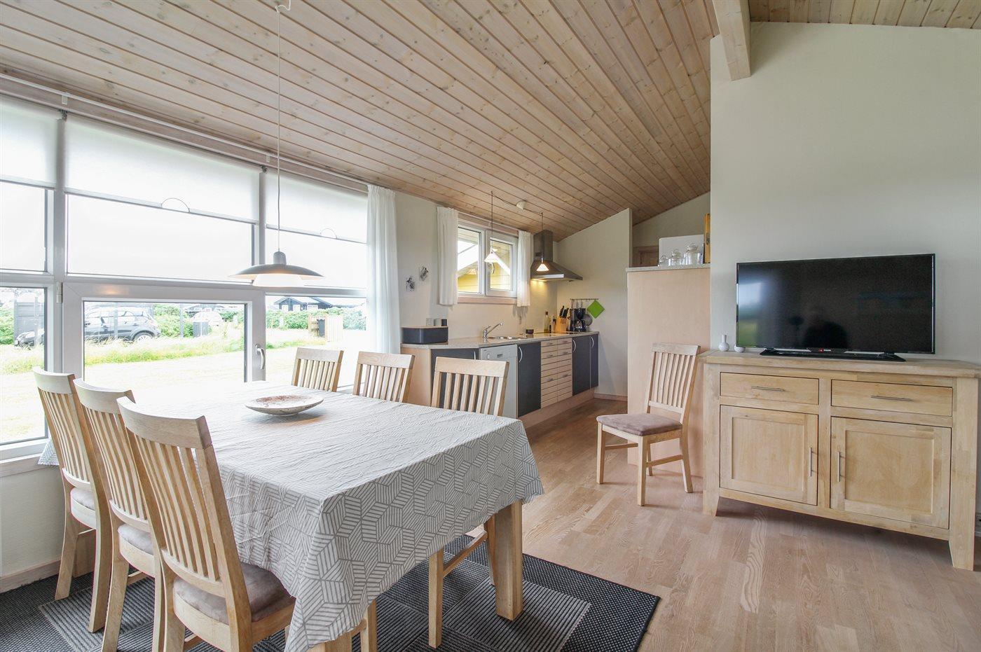 Køkkenet er udstyret med 1 køleskab. Der er 4 keramiske kogeplader, varmluftovn, mikrobølgeovn samt opvaskemaskine.