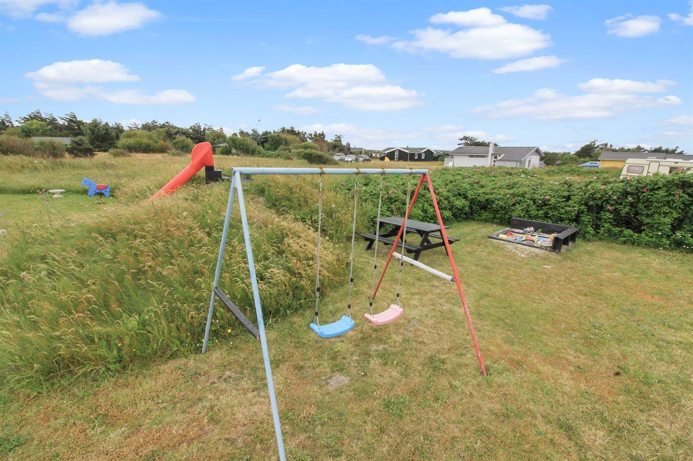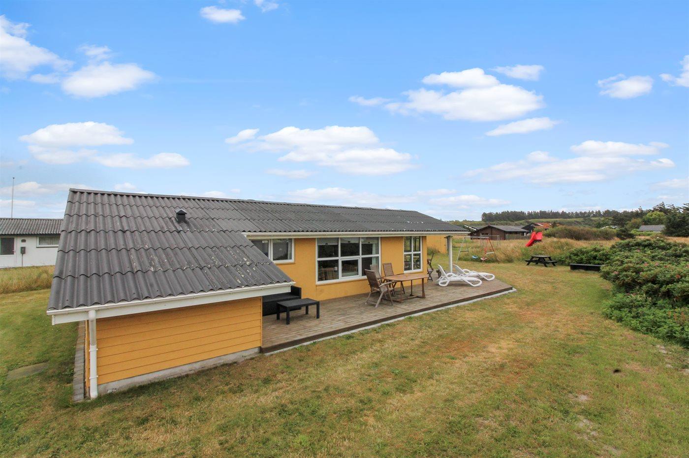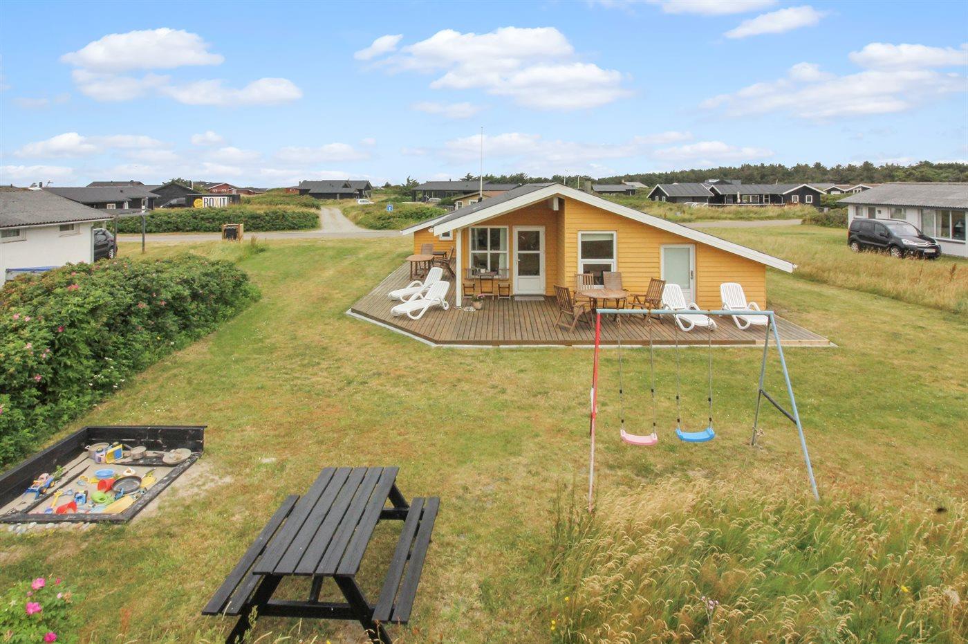 Sommerhus beliggende 1500 m fra stort aktivitetscenter med bl.a. tropisk badeland og nær god badestrand.