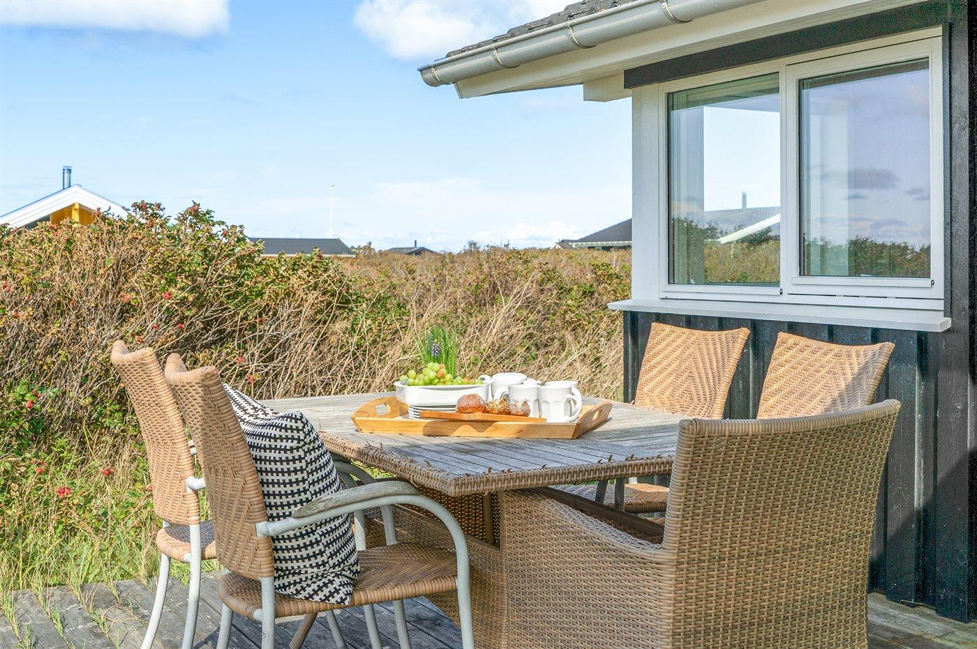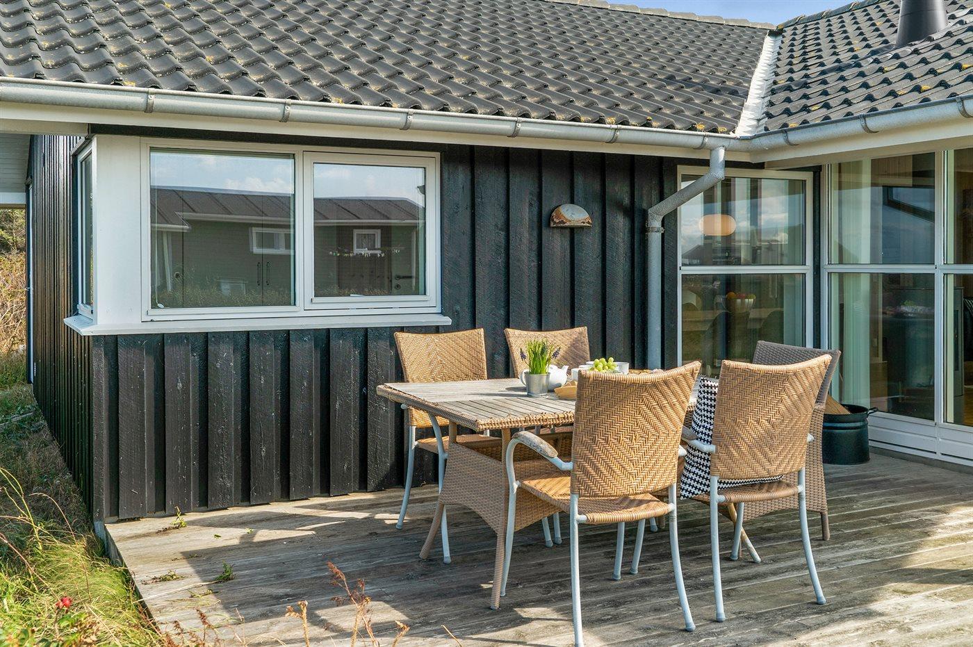 Ferieboligen er beliggende på en 1250 m² stor klitgrund. Der er 150 m til havet. Nærmeste forretning er beliggende i en afstand af 1500 m. Til ferieboligen hører 20 m² terrasseareal. Desuden er der 20 m² overdækket terrasse. Parkering ved ferieboligen.