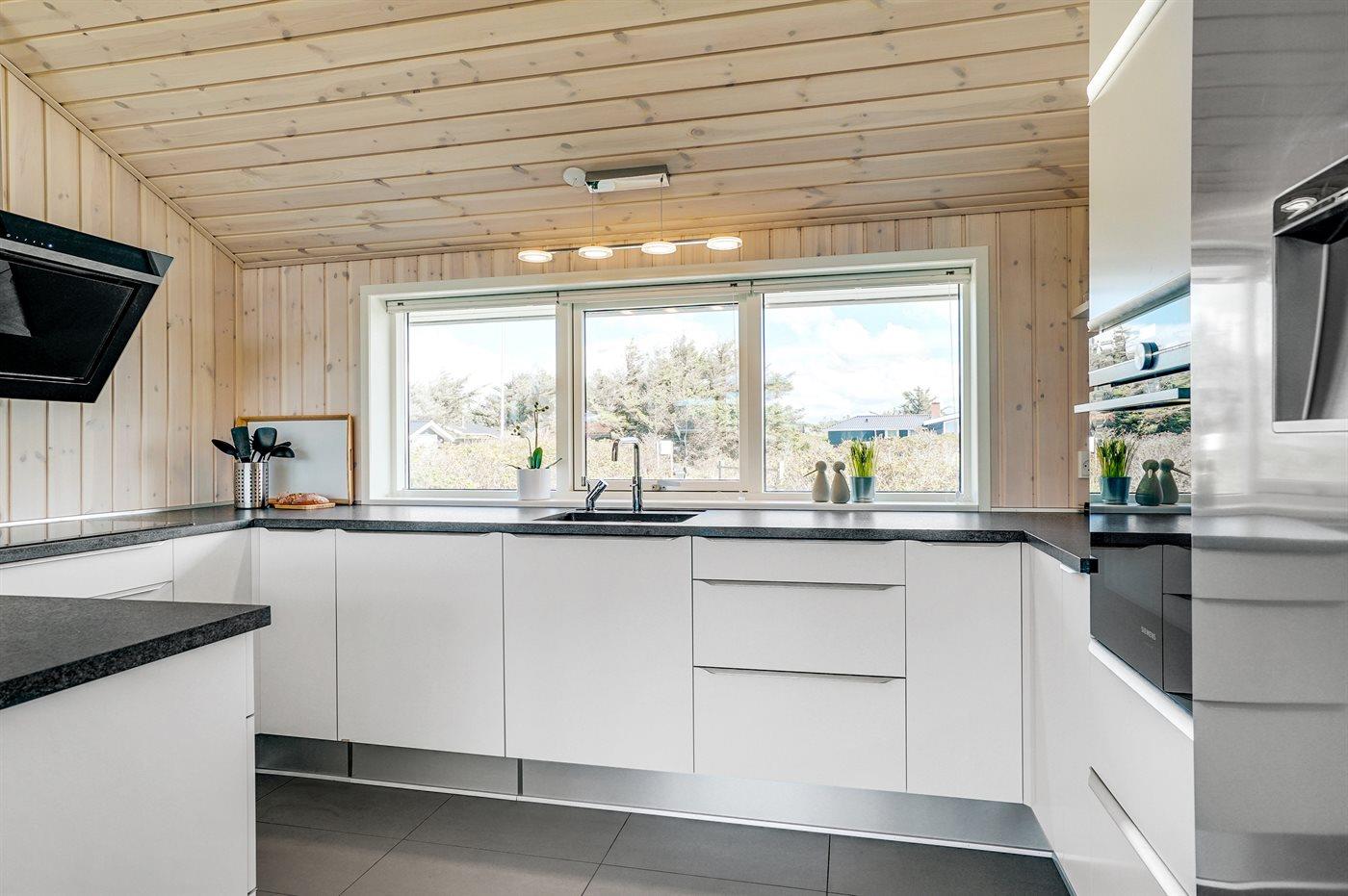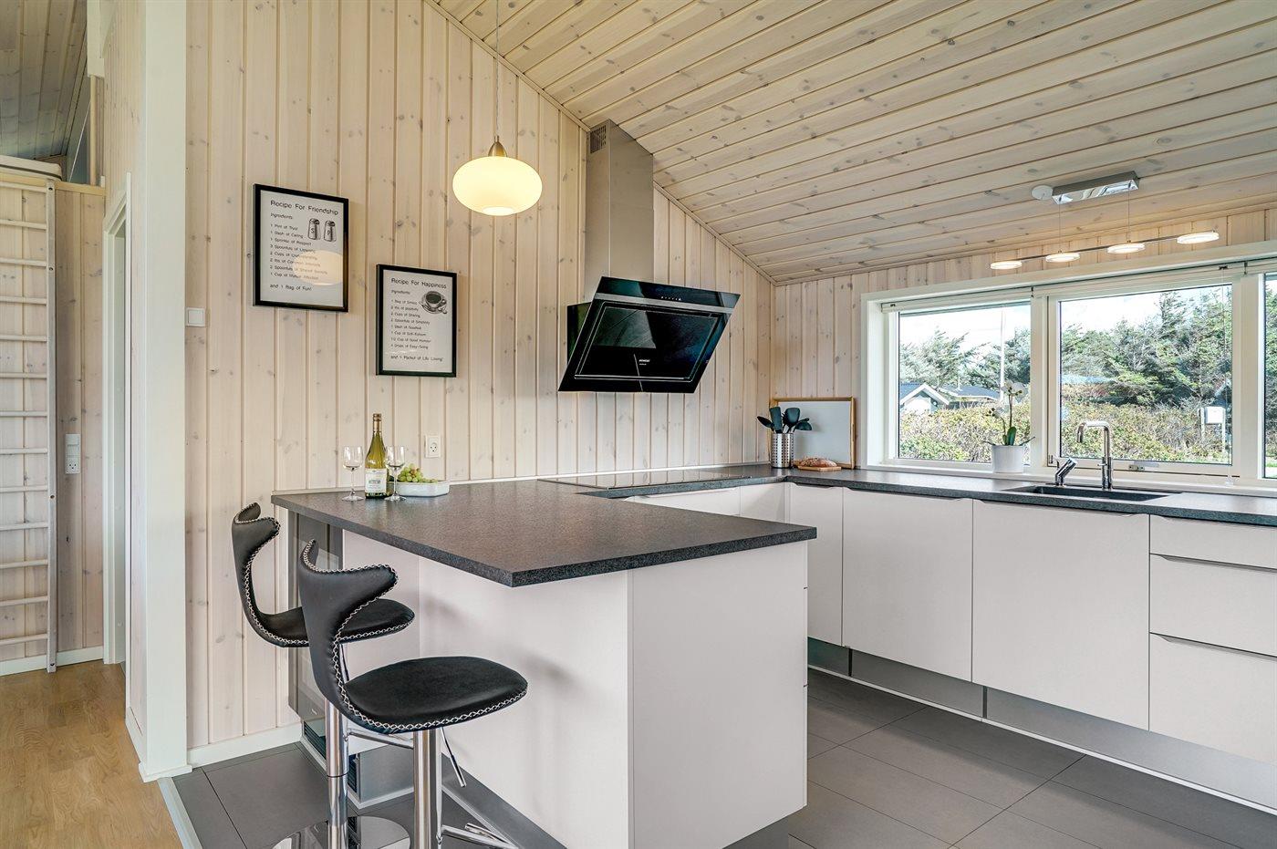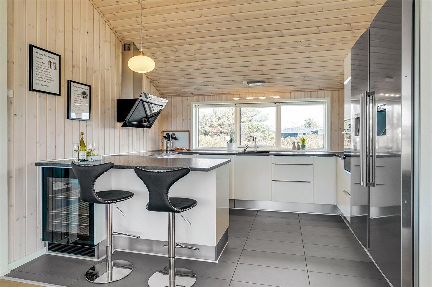 Køkkenet er udstyret med 1 køleskab. Der er 4 keramiske kogeplader, varmluftovn, mikrobølgeovn samt opvaskemaskine.