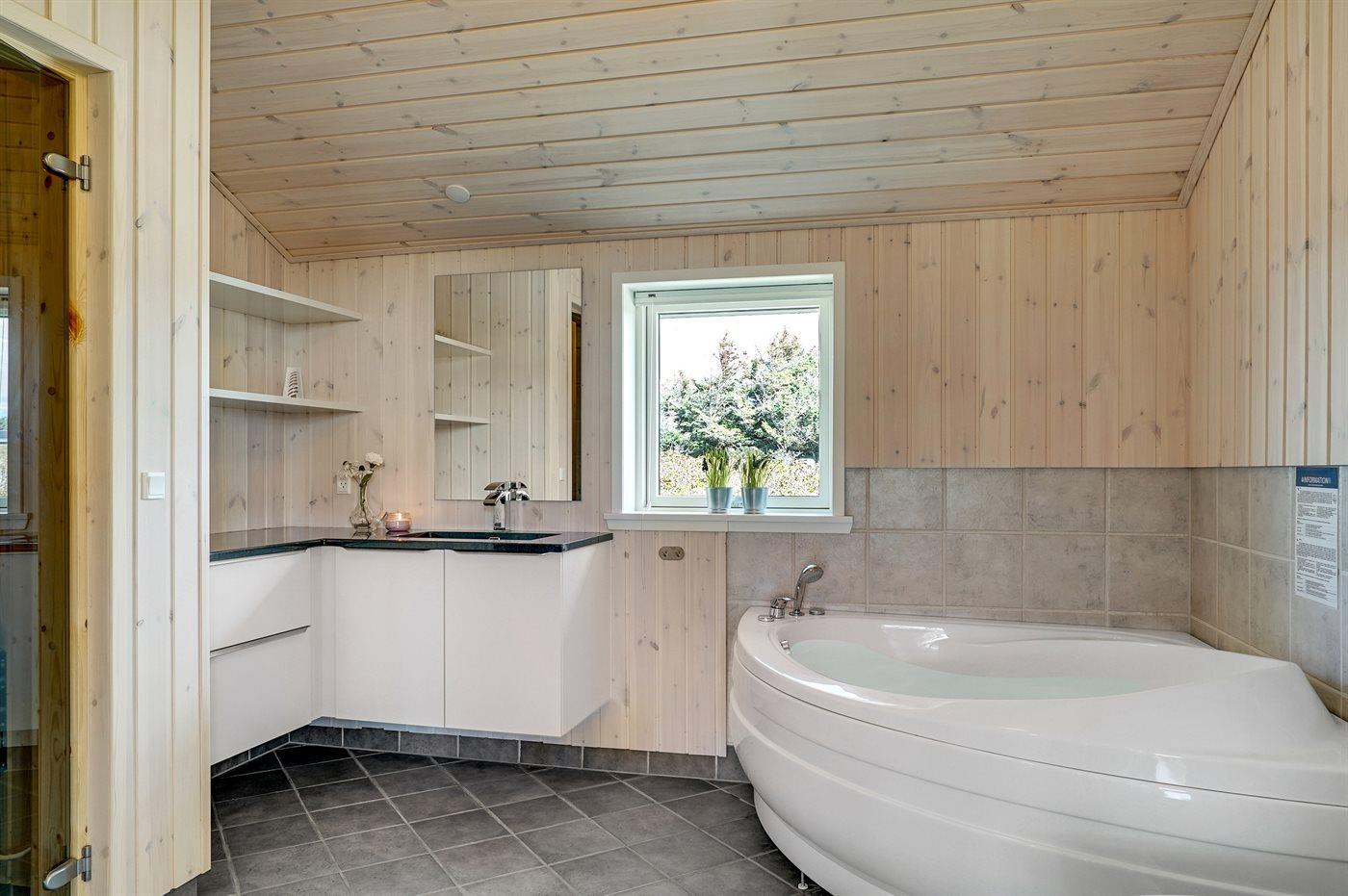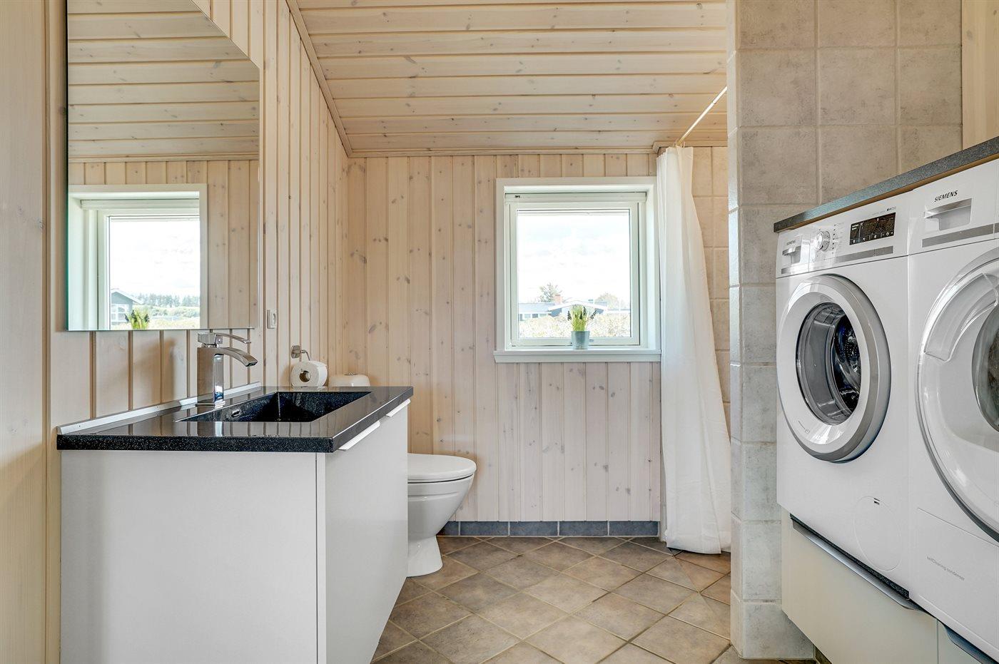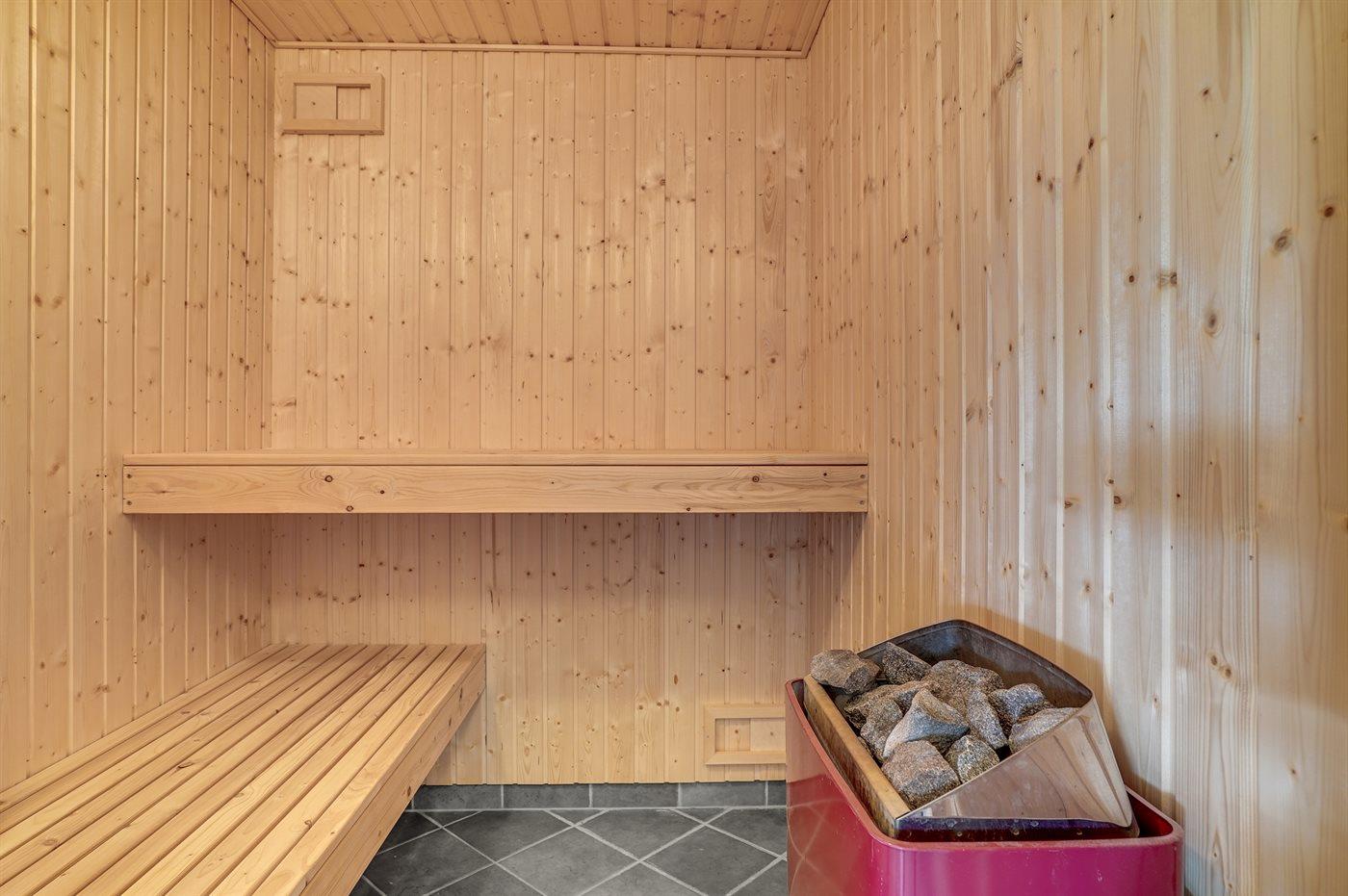 Der er 2 badeværelser med bruser og 2 toiletter. Der er gulvvarme på 1 badeværelse. I saunaen er der mulighed for afslapning.