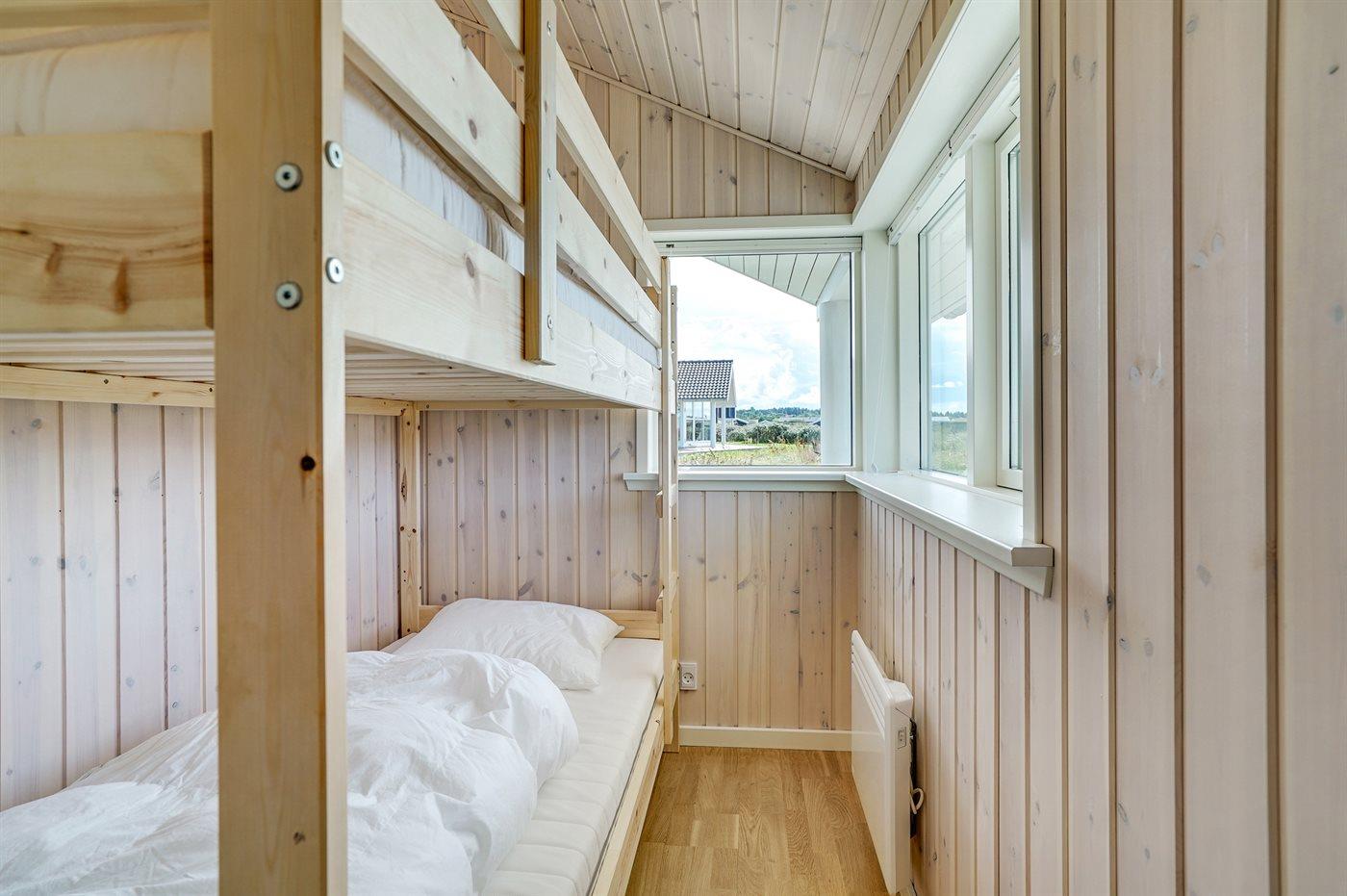 Der er i alt 3 soveværelser. Sovepladserne fordeler sig på: 4 sovepladser i dobbeltsenge. 2 sovepladser i enkeltsenge. 2 sovepladser i køjeseng. 2 af disse sovepladser befinder sig på husets hems. Derudover er der 1 stk. barneseng.