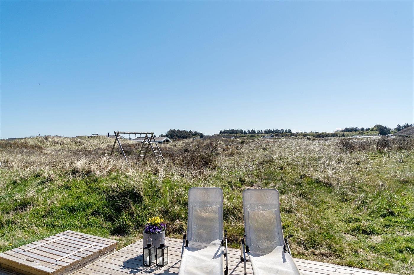 Ferieboligen er beliggende på en 1700 m² stor klitgrund. Der er 250 m til havet. Nærmeste forretning er beliggende i en afstand af 1500 m. Til ferieboligen hører 40 m² terrasseareal. Desuden er der 10 m² overdækket terrasse. Gynge. Sandkasse. Parkering ved ferieboligen.