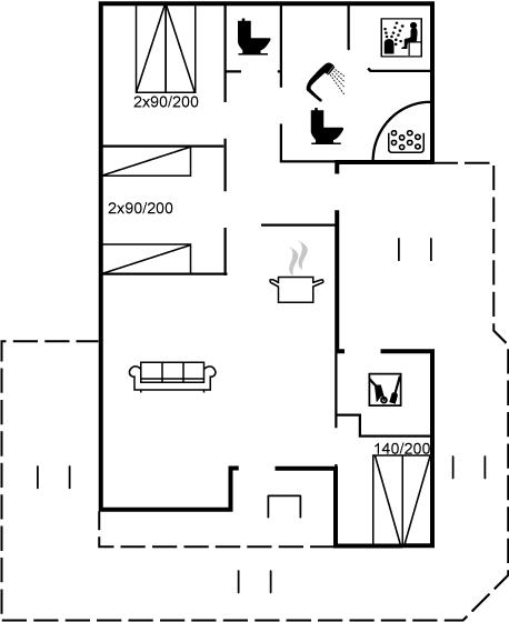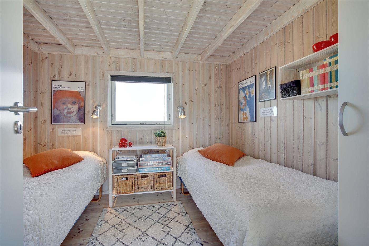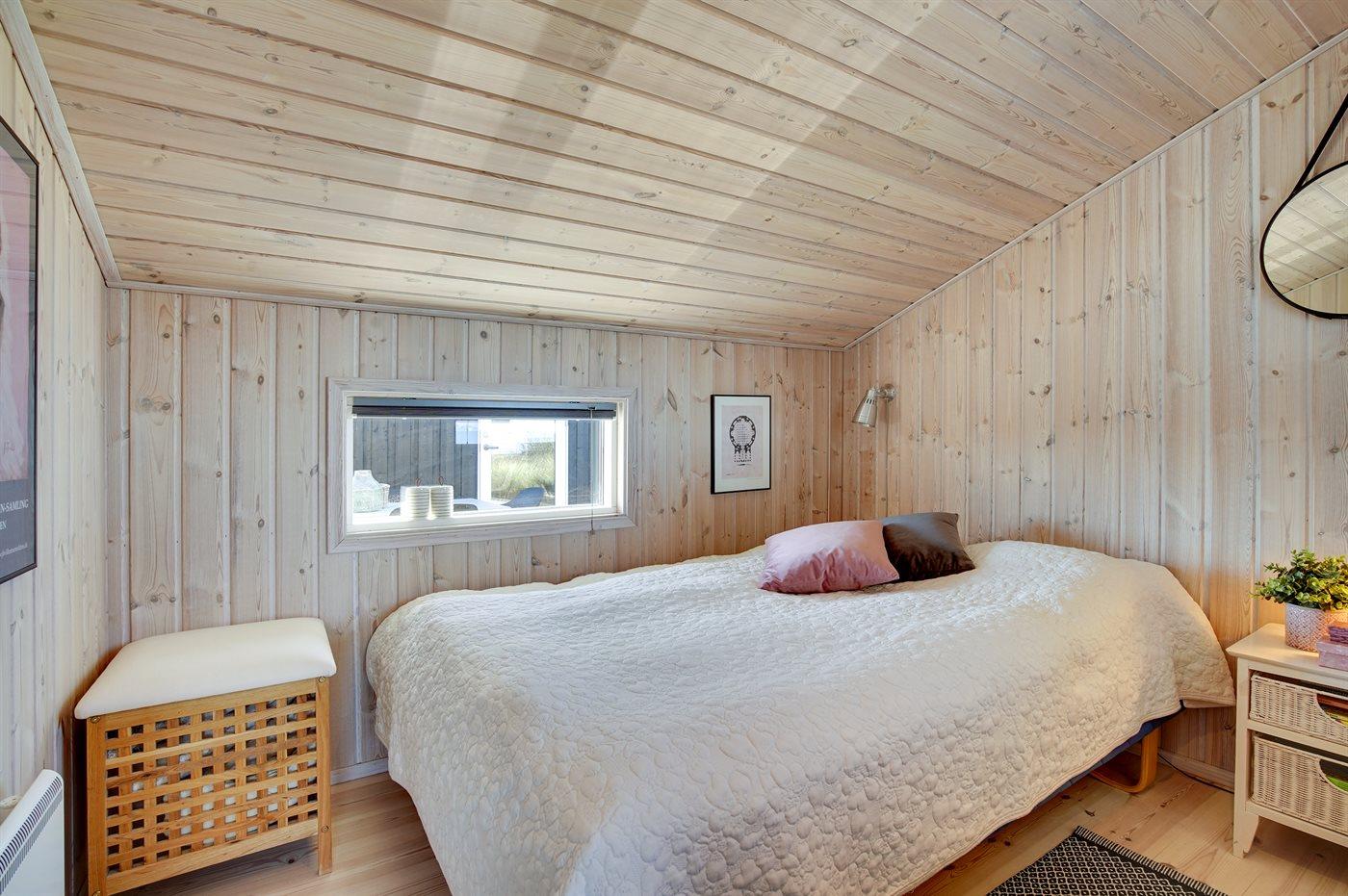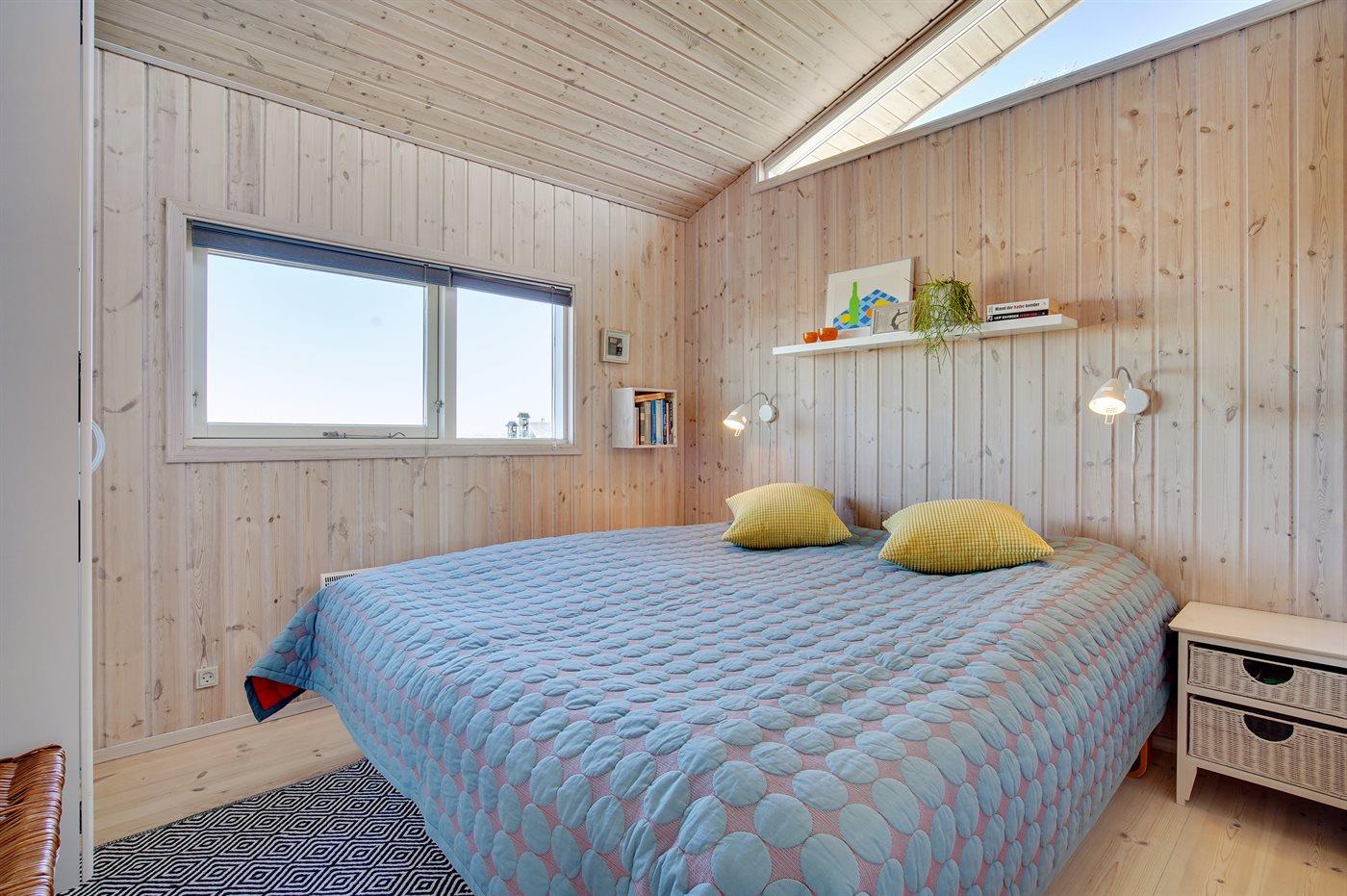 Der er i alt 3 soveværelser. Sovepladserne fordeler sig på: 4 sovepladser i dobbeltsenge. 2 sovepladser i enkeltsenge. Derudover er der 1 stk. barneseng.