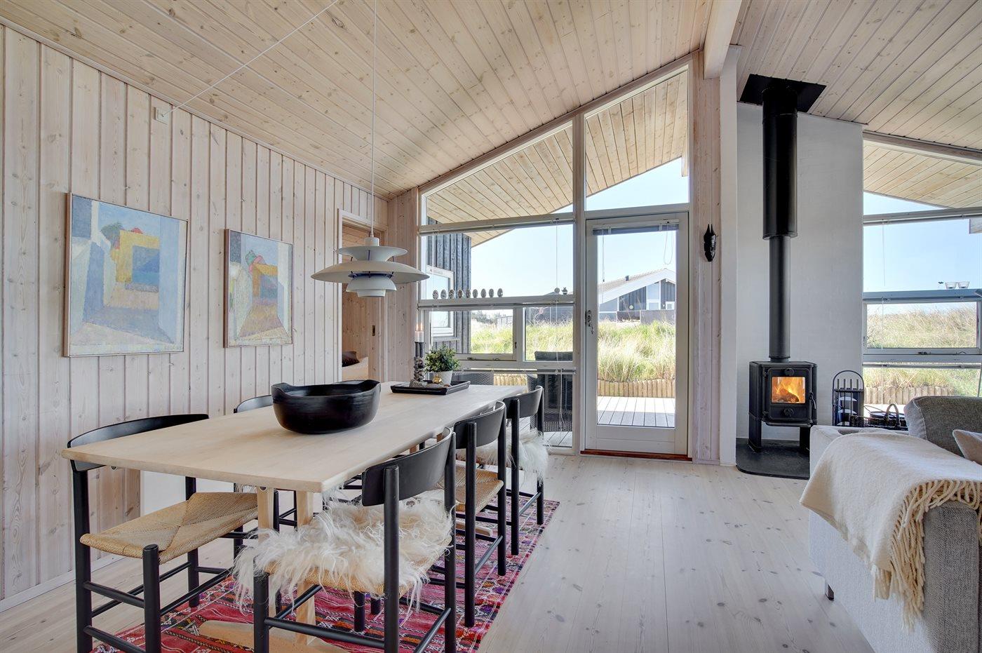 Dette pragtfulde sommerhus ligger på en kuperet grund i Nørlev, hvor der fra såvel hus som grund er kig til Vesterhavet.