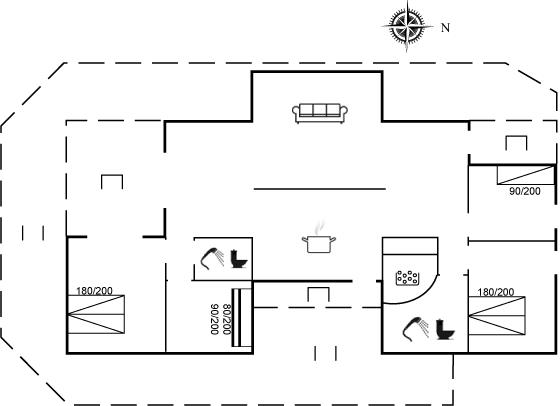 Husets 10 sovepladser fordeler sig på 2 dejlige soveværelser med dobbeltseng, 1 med køjeseng, 1 med 1 enkeltseng samt 3 sovepladser på hems. Trægulve, dog klinkegulv i køkken og på badeværelserne.