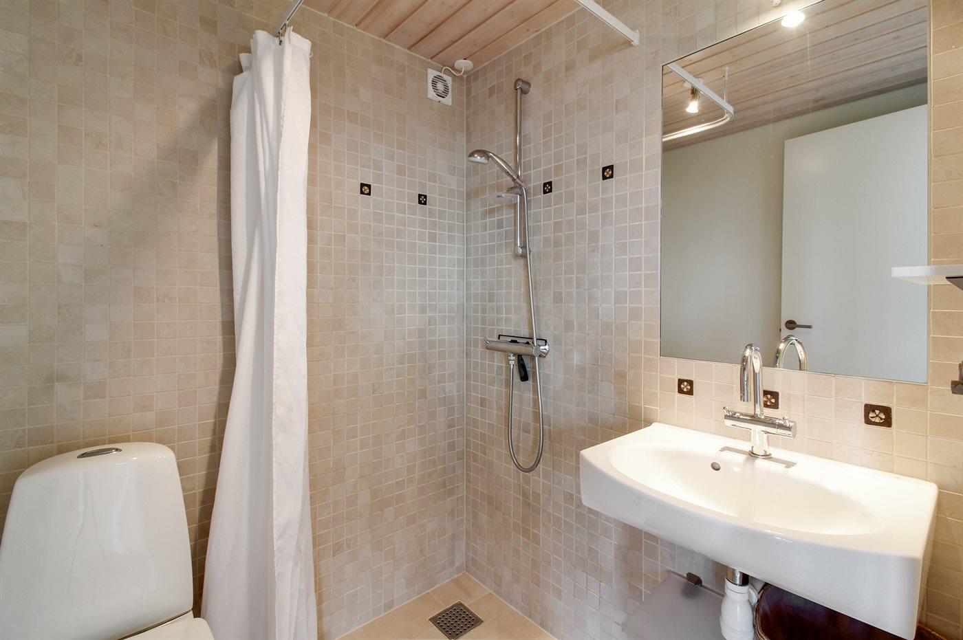 Der findes 2 dejlige badeværelser; 1 stort med gulvvarme, bruseniche og 2-pers. spa og 1 mindre med gulvvarme og bruseniche. Dejligt køkken med bl.a. varmluftovn, komfur med keramiske kogeplader, mikrobølgeovn, fryser og opvaskemaskine.