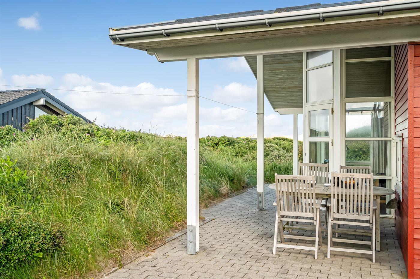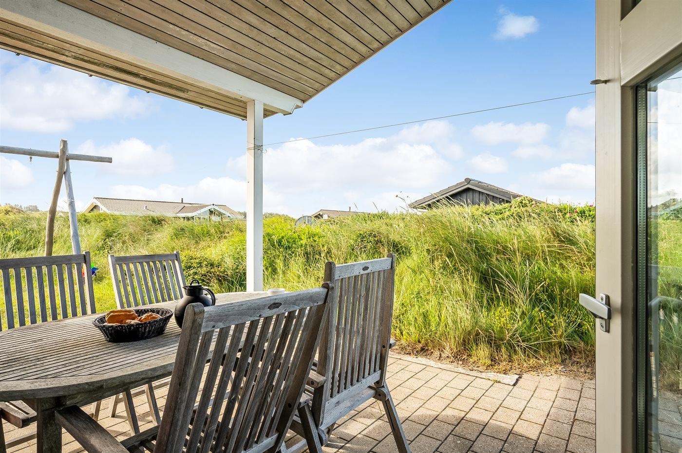 Ferieboligen er beliggende på en 1200 m² stor naturgrund. Der er 250 m til havet. Nærmeste forretning er beliggende i en afstand af 1500 m. Til ferieboligen hører 60 m² terrasseareal. Desuden er der 25 m² overdækket terrasse. Gynge. Sandkasse. Grill til rådighed. Der er installeret stik til opladning af elbil. Type 2 stik. Med 11 kW ladeeffekt.