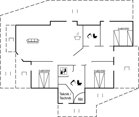 Sommerhuset egner sig til 6 personer samt 1 barn op til 3 år. Ferieboligen er på 103 m² og er bygget i 2001. Det er tilladt at medbringe 2 husdyr. Der er gulvvarme i alle klinkegulve. Ferieboligen har vaskemaskine. Tørretumbler. Frysekapacitet på 80 liter. Der er desuden brændeovn. Til de små er der 1 stk. barnestol.