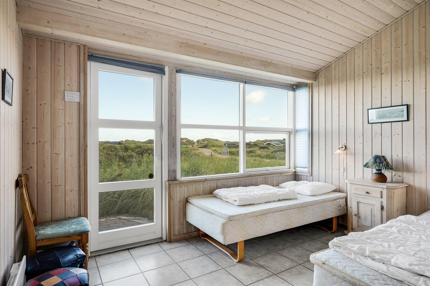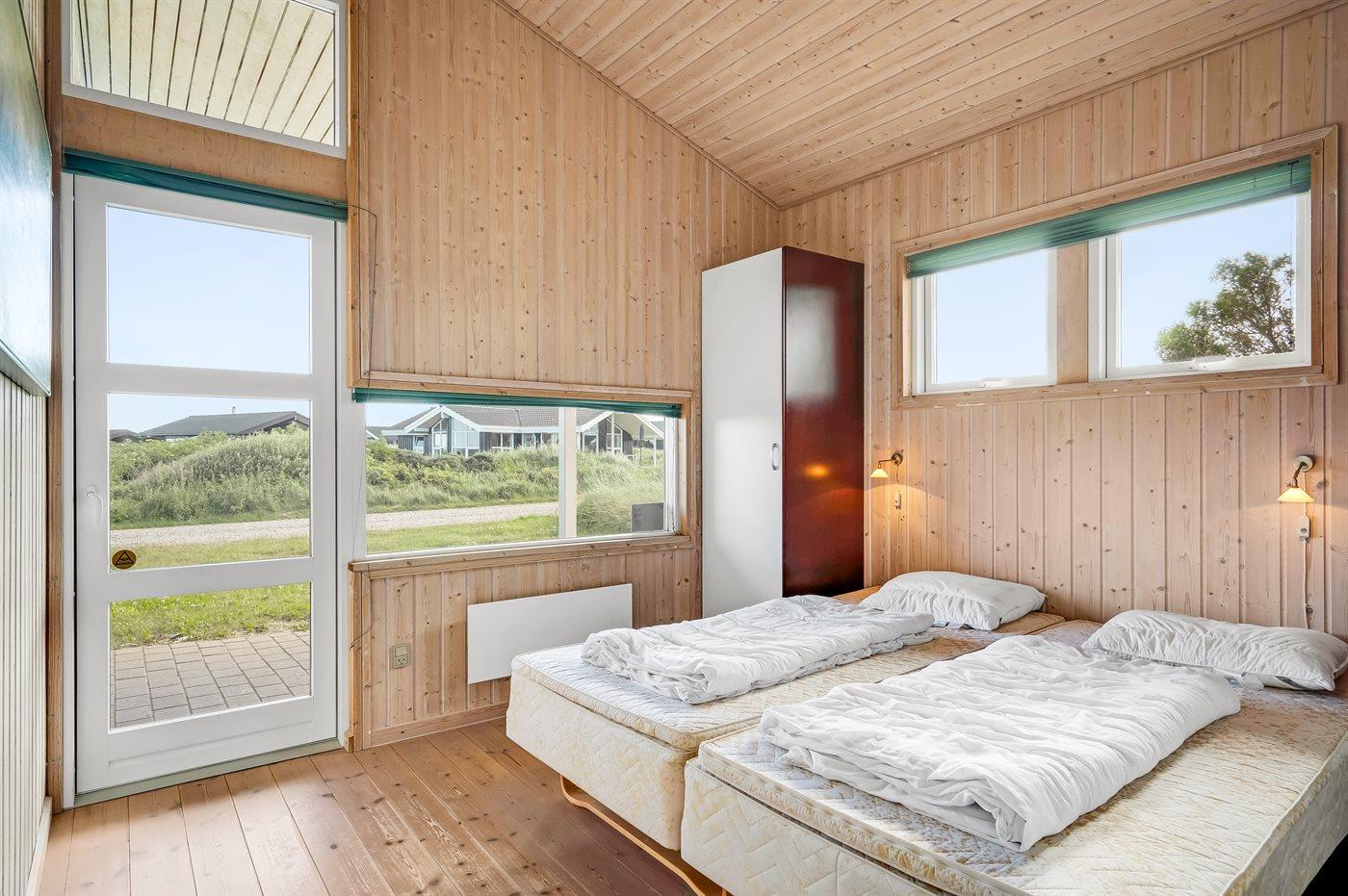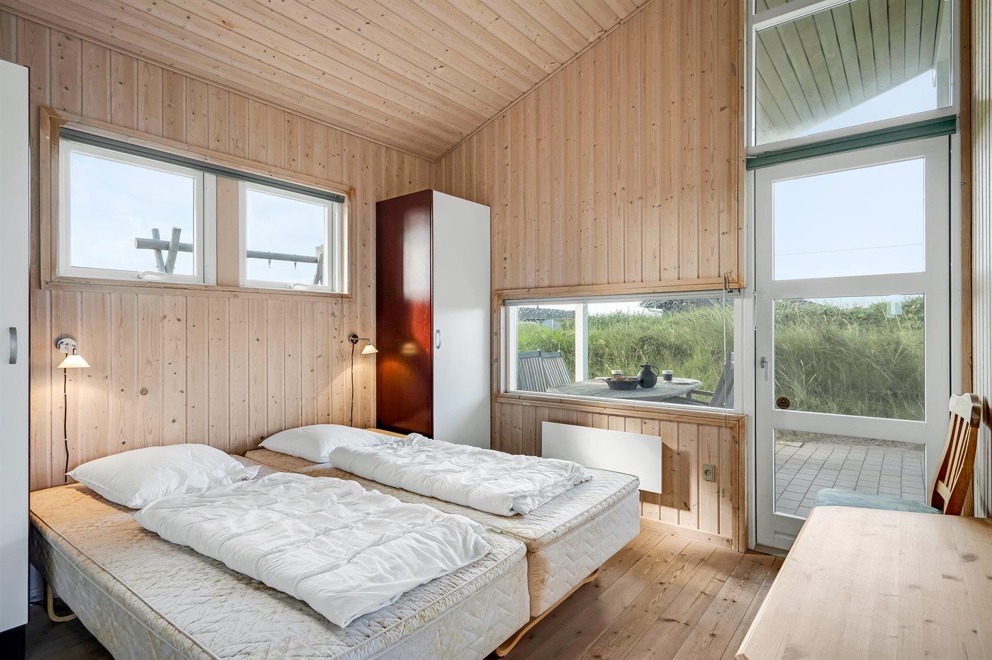 Der er i alt 3 soveværelser. Sovepladserne fordeler sig på: 4 sovepladser i dobbeltsenge. 2 sovepladser i enkeltsenge. Derudover er der 1 stk. barneseng.