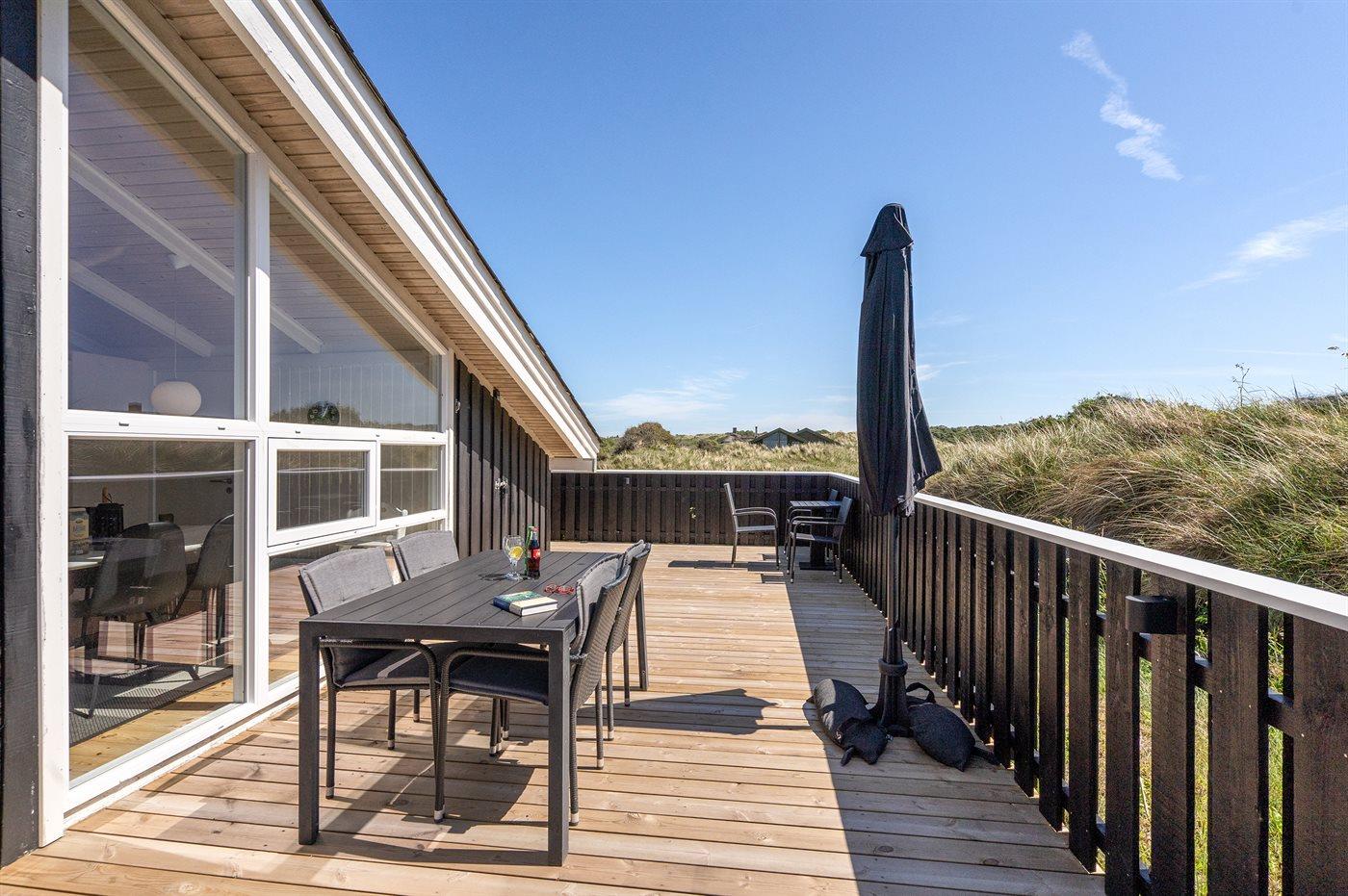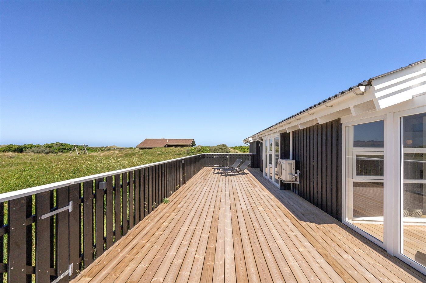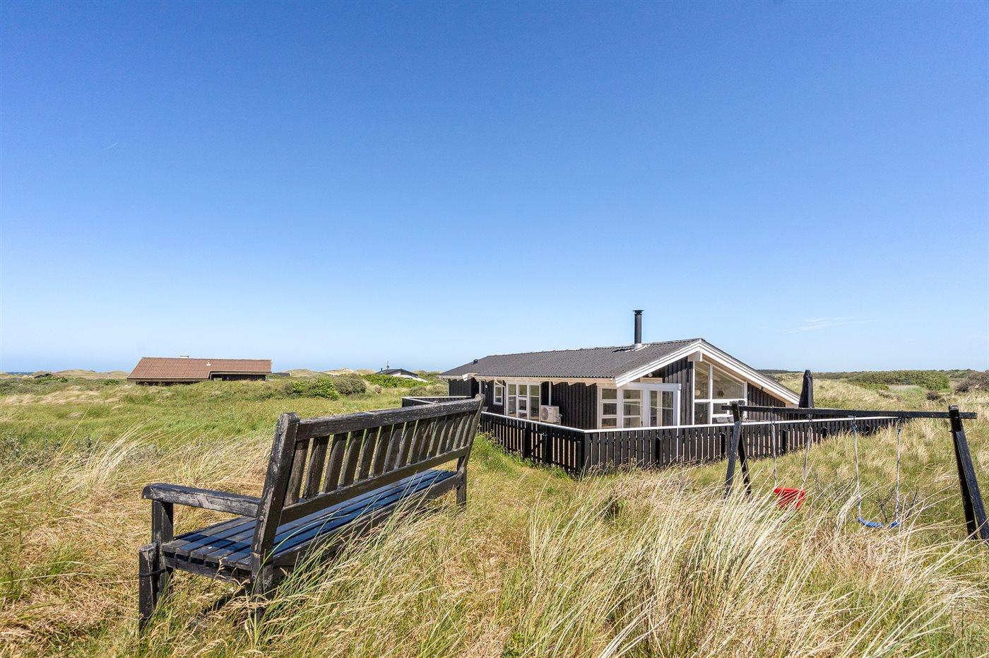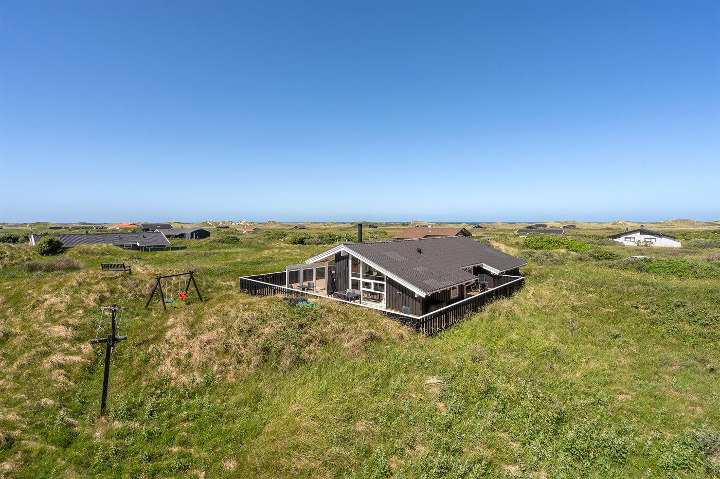 Dejligt sommerhus med god plads beliggende nær stranden og Vesterhavet i rolige og naturskønne omgivelser. Huset ligger på en meget stor og kuperet grund med tilhørende afskærmede terrassearealer på flere sider af huset.
