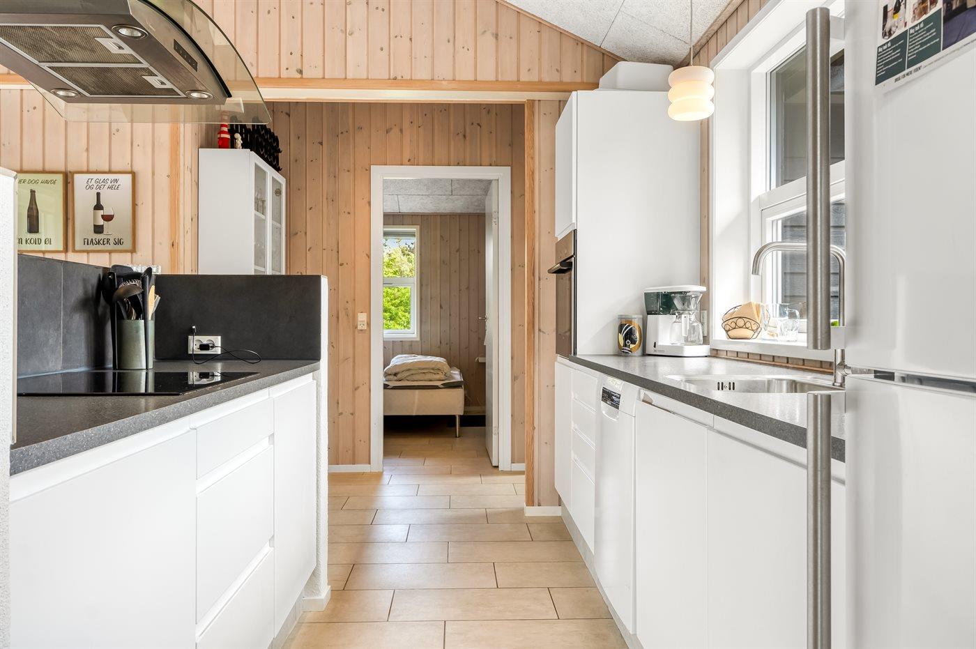 Køkkenet er udstyret med 1 køleskab. Der er 4 keramiske kogeplader, varmluftovn, mikrobølgeovn samt opvaskemaskine.