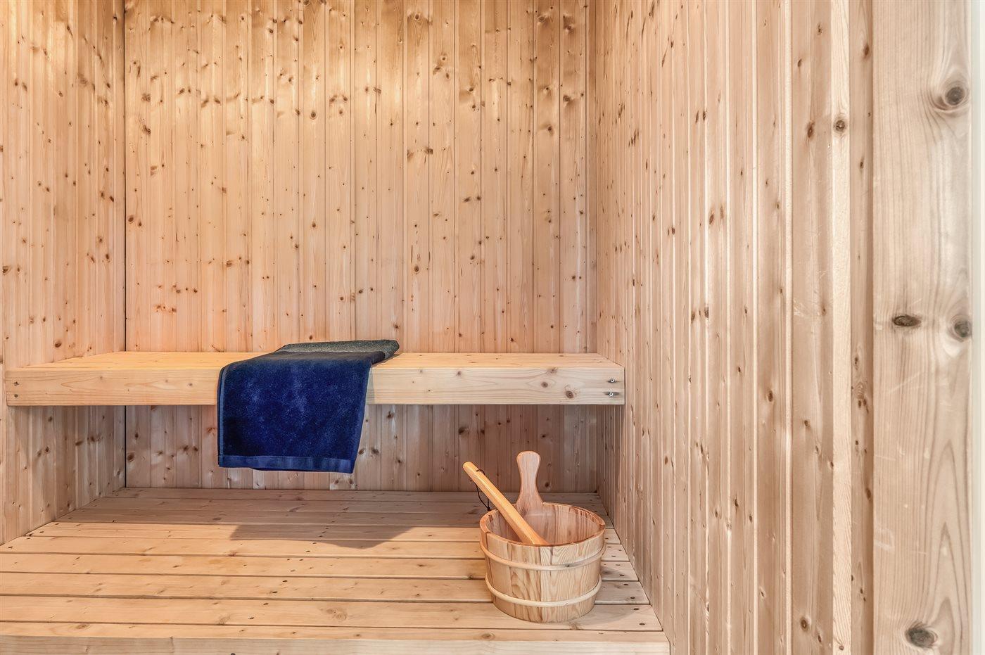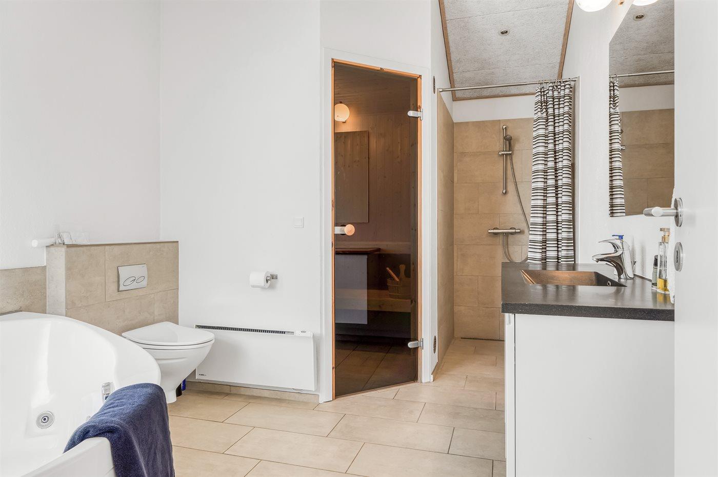 Der er 2 badeværelser med bruseniche og 2 toiletter. Der er gulvvarme på 2 badeværelser. I saunaen er der mulighed for afslapning.