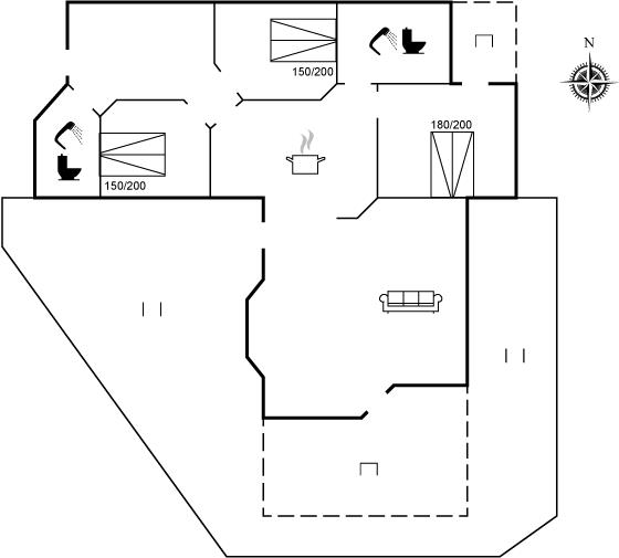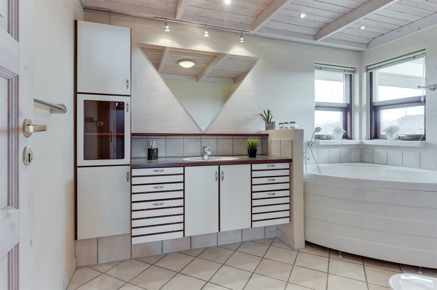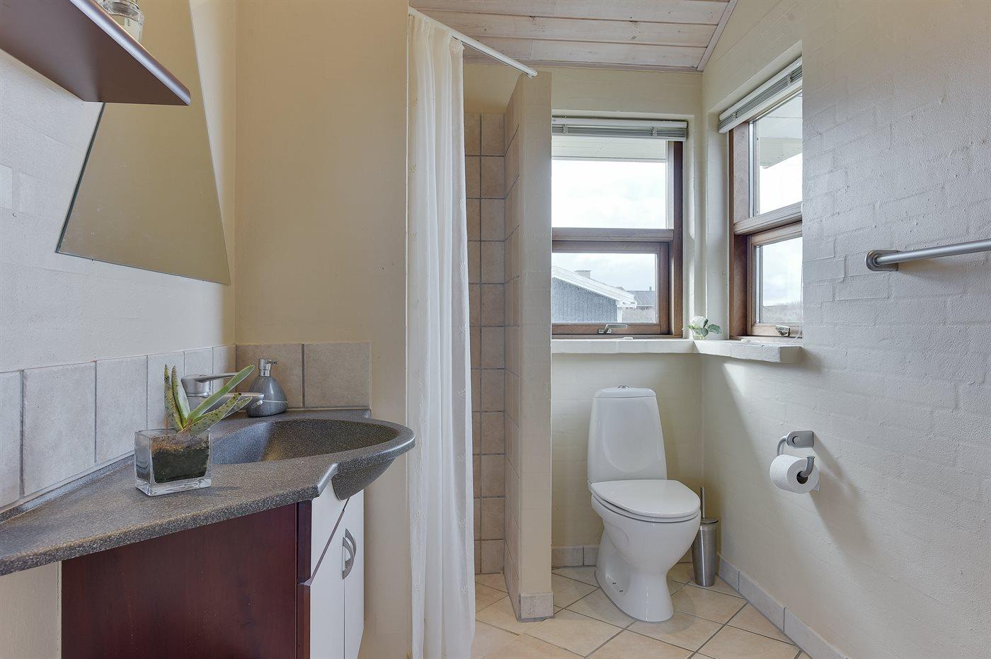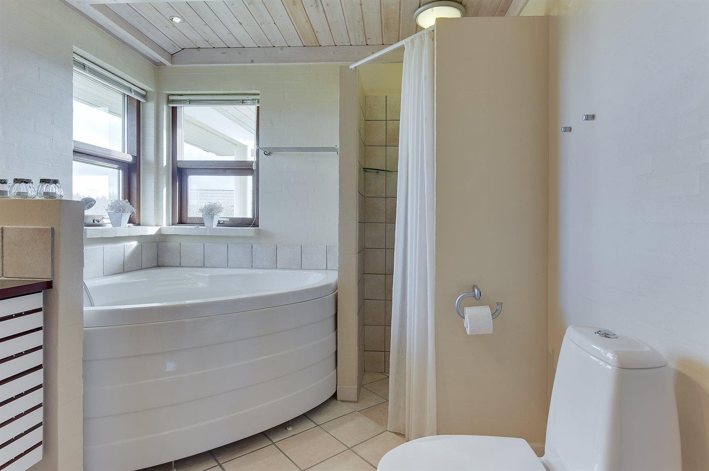 Der er 2 badeværelser med bruseniche og 2 toiletter. Der er gulvvarme på 2 badeværelser.. Badekar.