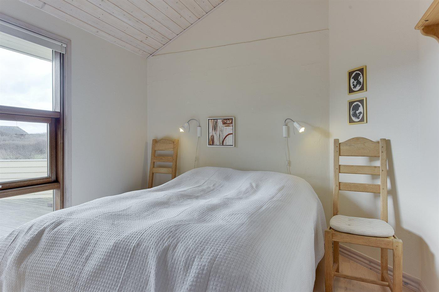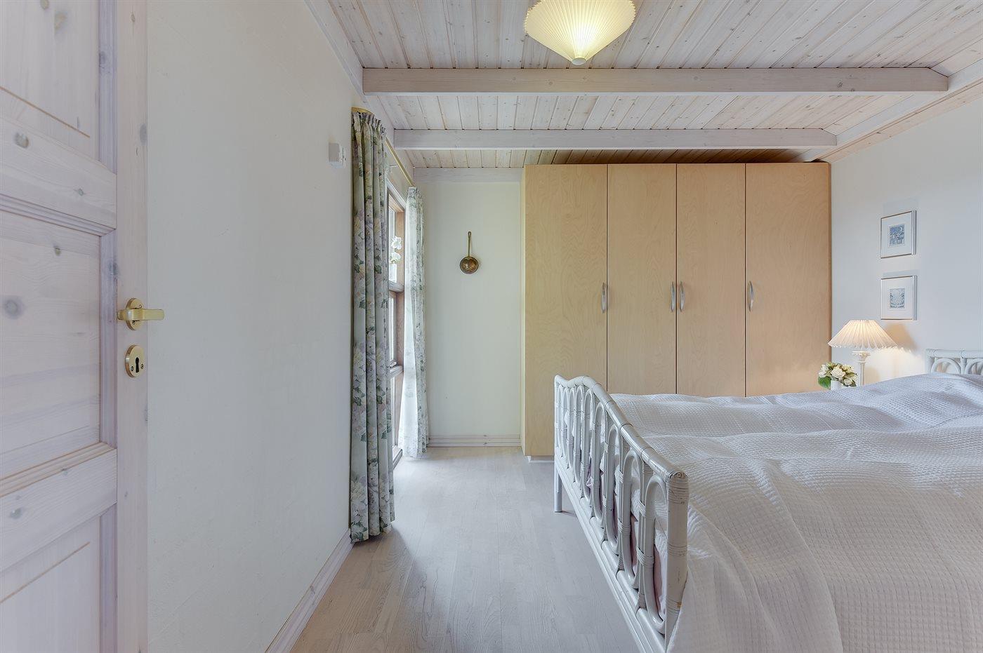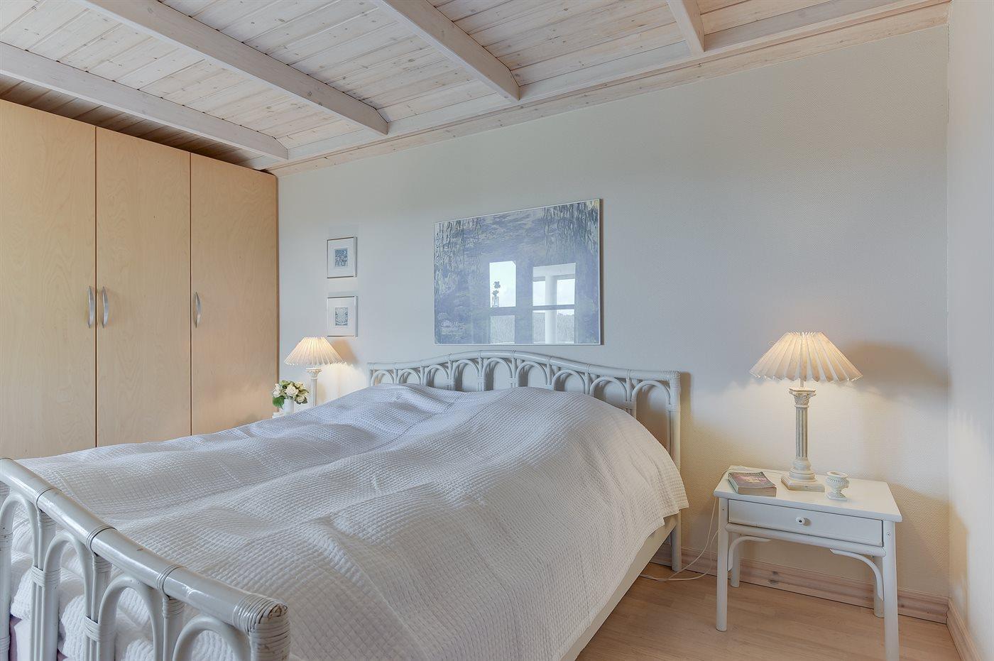 Der er i alt 3 soveværelser. Sovepladserne fordeler sig på: 6 sovepladser i dobbeltsenge. 2 sovepladser på madrasser. 2 af disse sovepladser befinder sig på husets hems. Derudover er der 1 stk. barneseng.