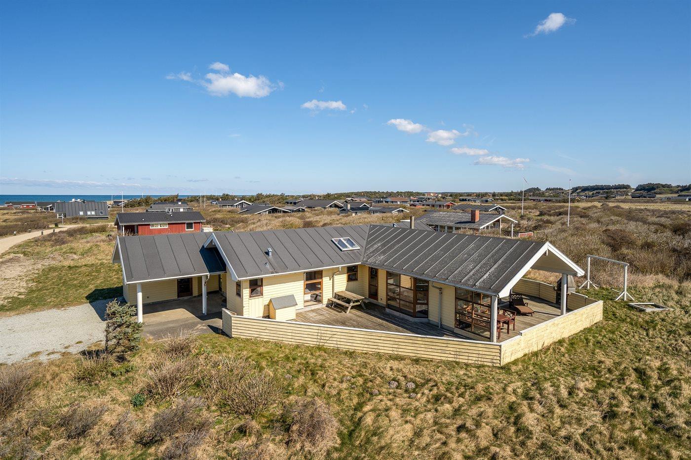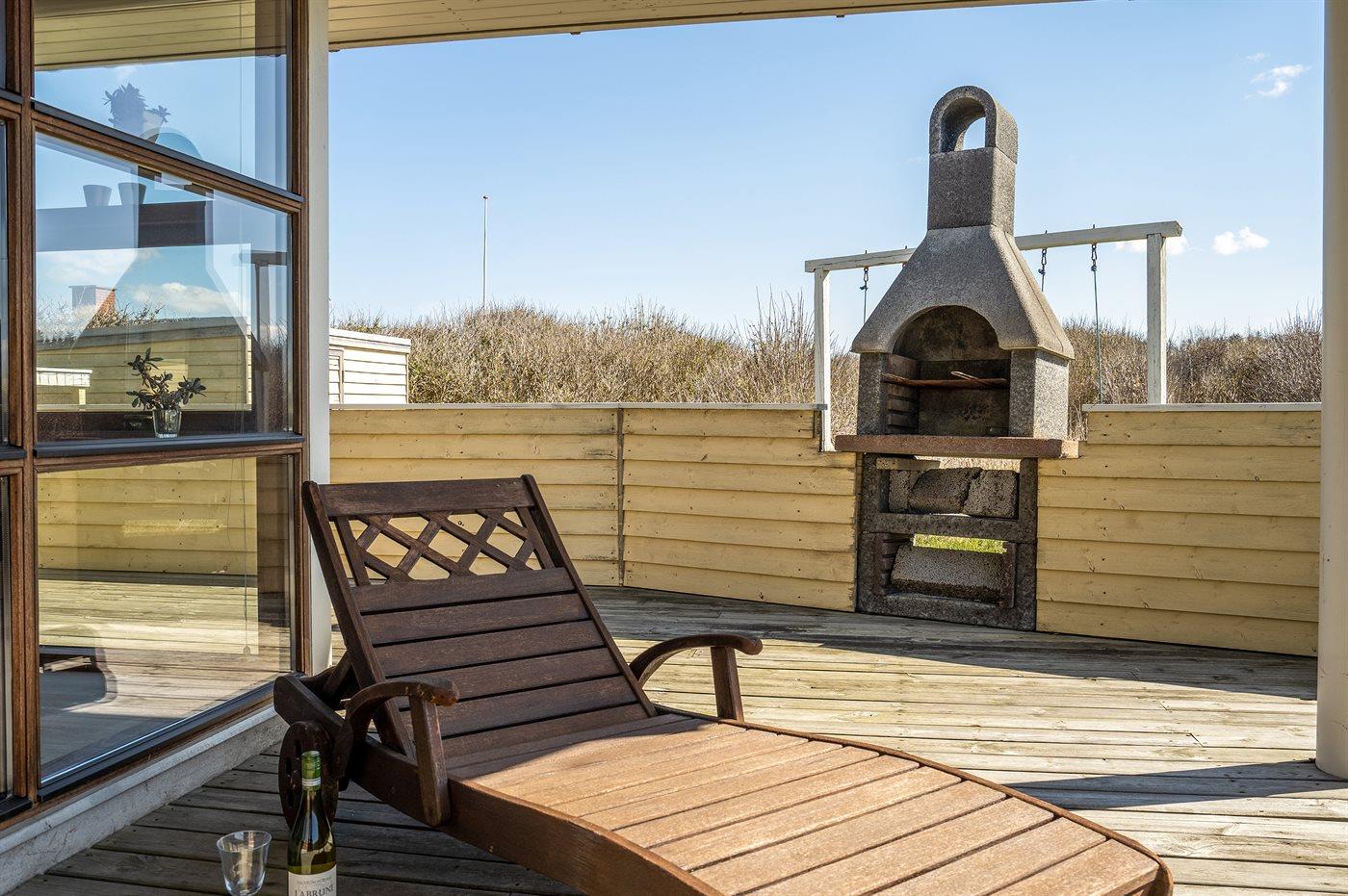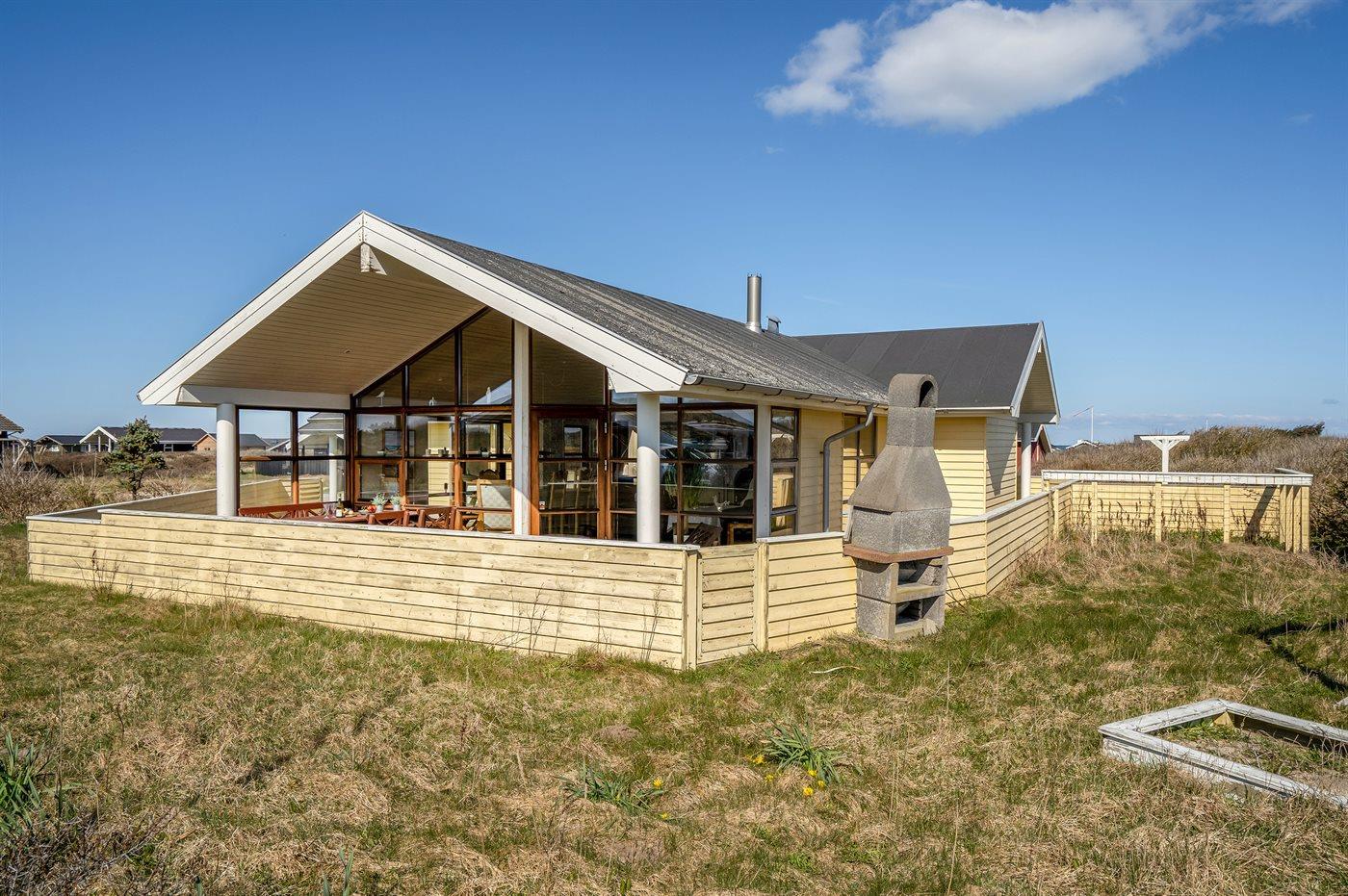 Ferieboligen er beliggende på en 1200 m² stor naturgrund. Der er 300 m til havet. Nærmeste forretning er beliggende i en afstand af 1500 m. Til ferieboligen hører i alt 80 m² lukket terrasse. Heraf er 30 m² overdækket. Gynge. Sandkasse. Parkering ved ferieboligen.