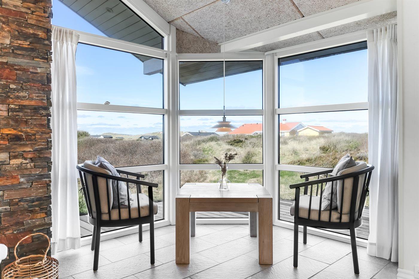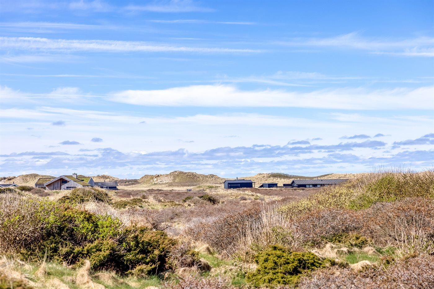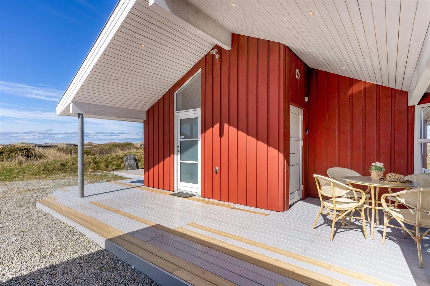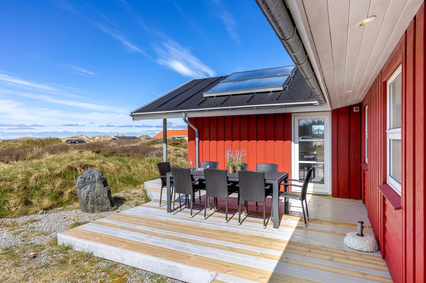 Hele vejen rundt om huset findes dejlige terrassearealer, og på grunden kan man sidde frit og uforstyrret og nyde naturudsigten helt ned til klitterne.