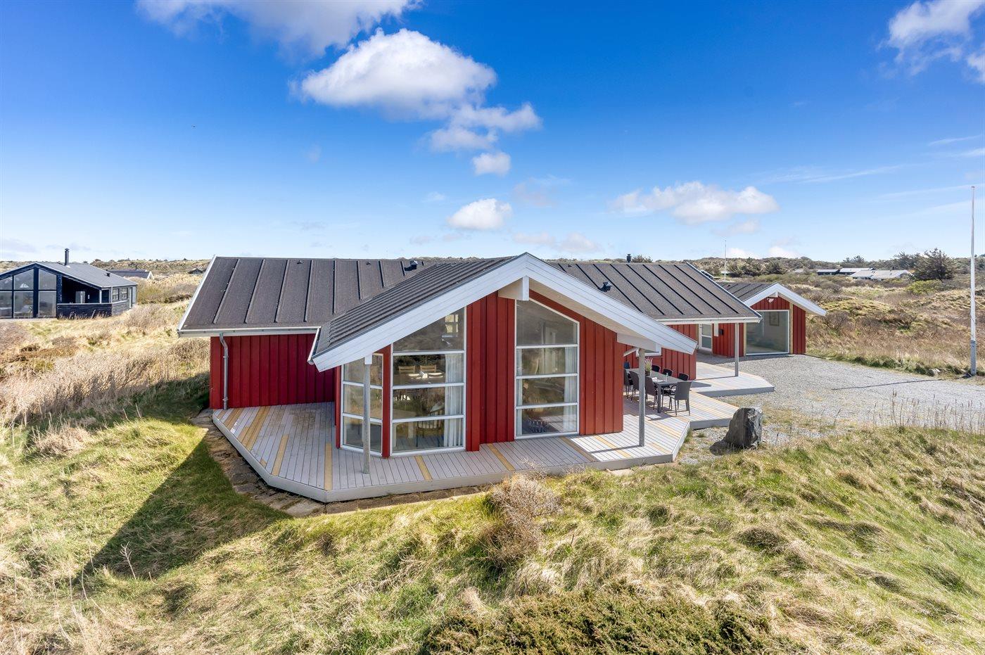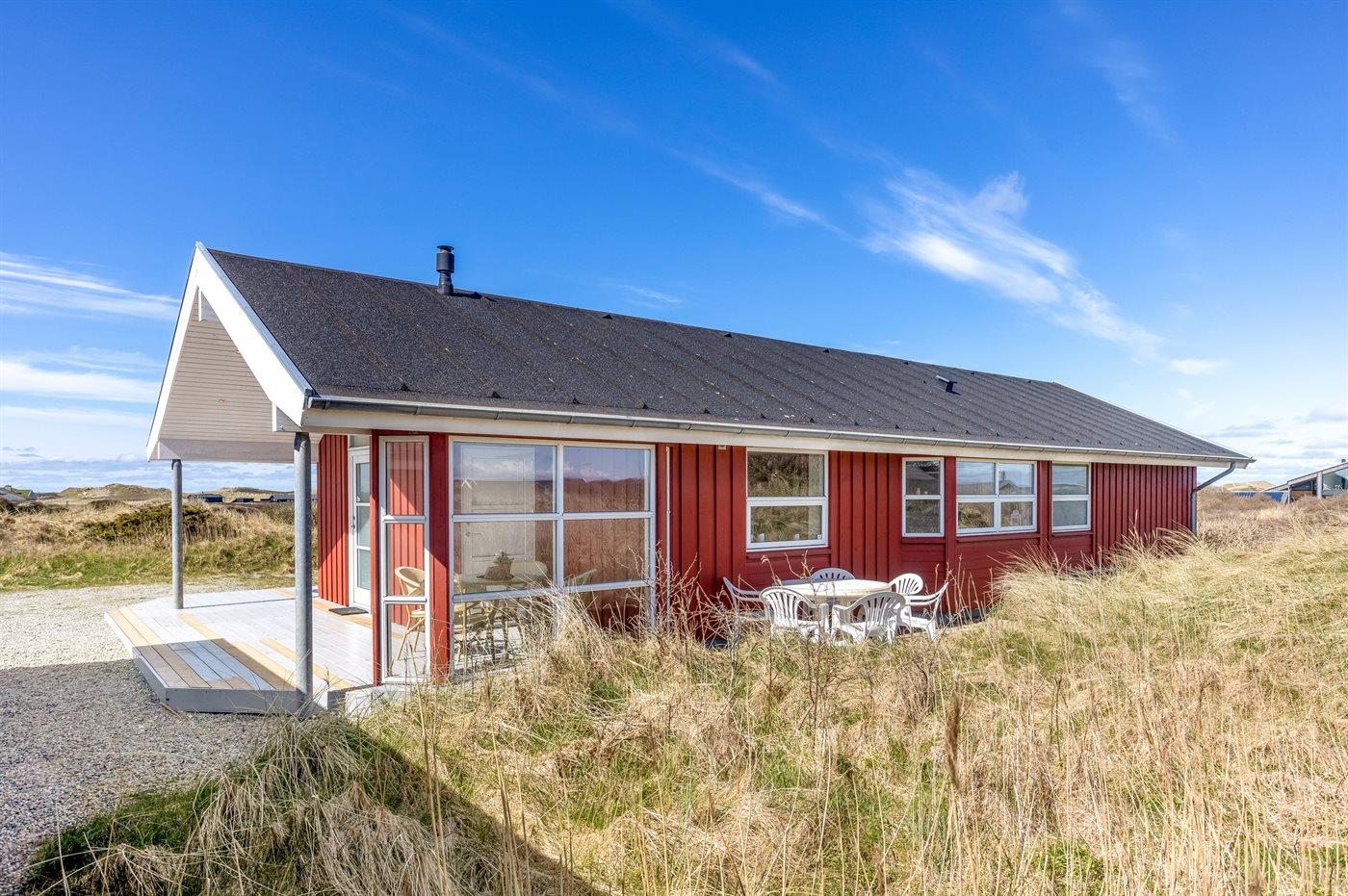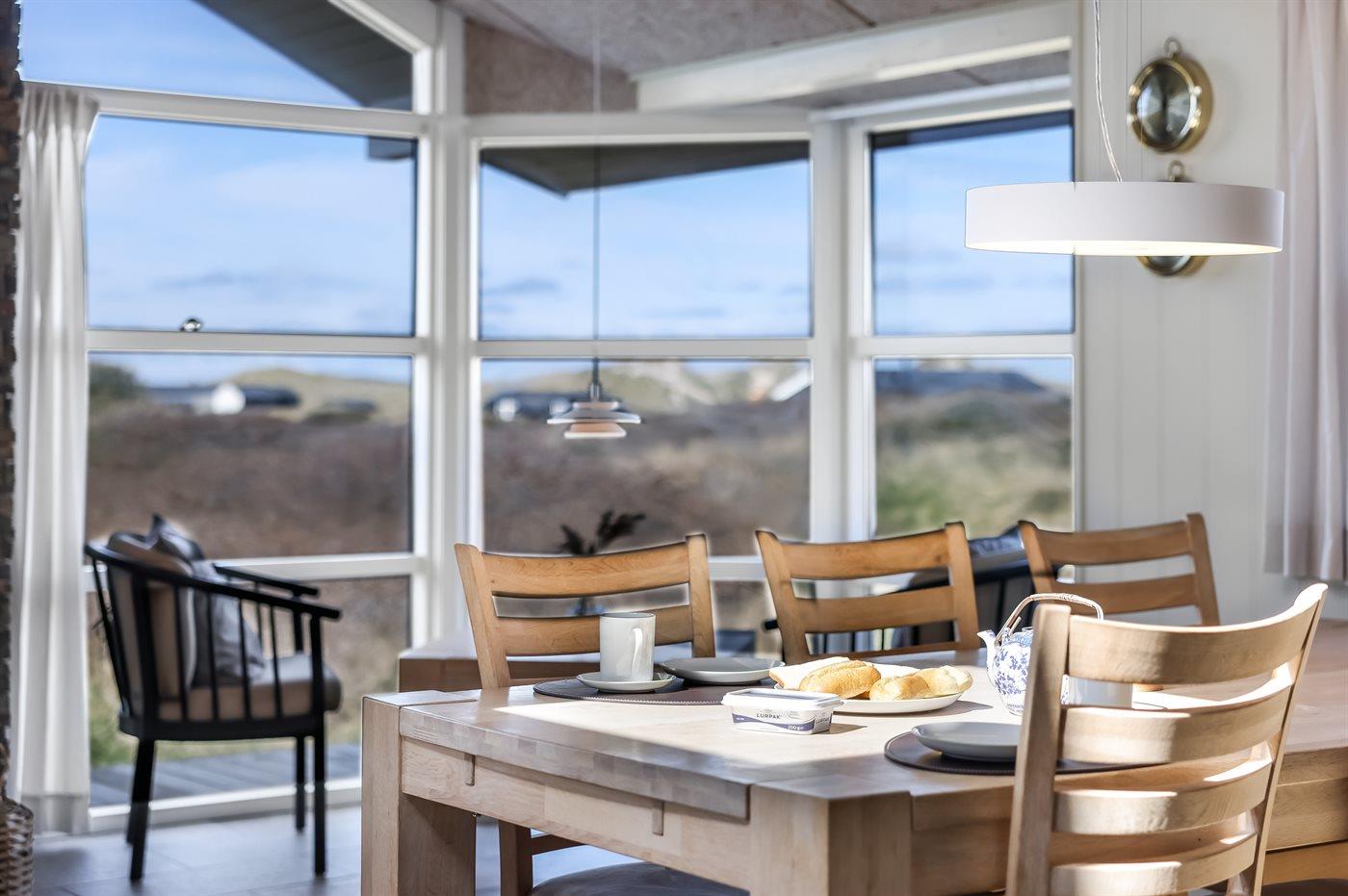 Hele vejen rundt om huset findes dejlige terrassearealer, og på grunden kan man sidde frit og uforstyrret og nyde naturudsigten helt ned til klitterne.