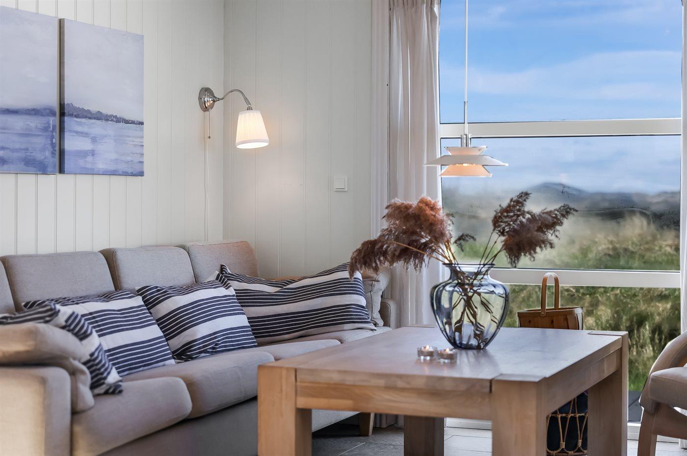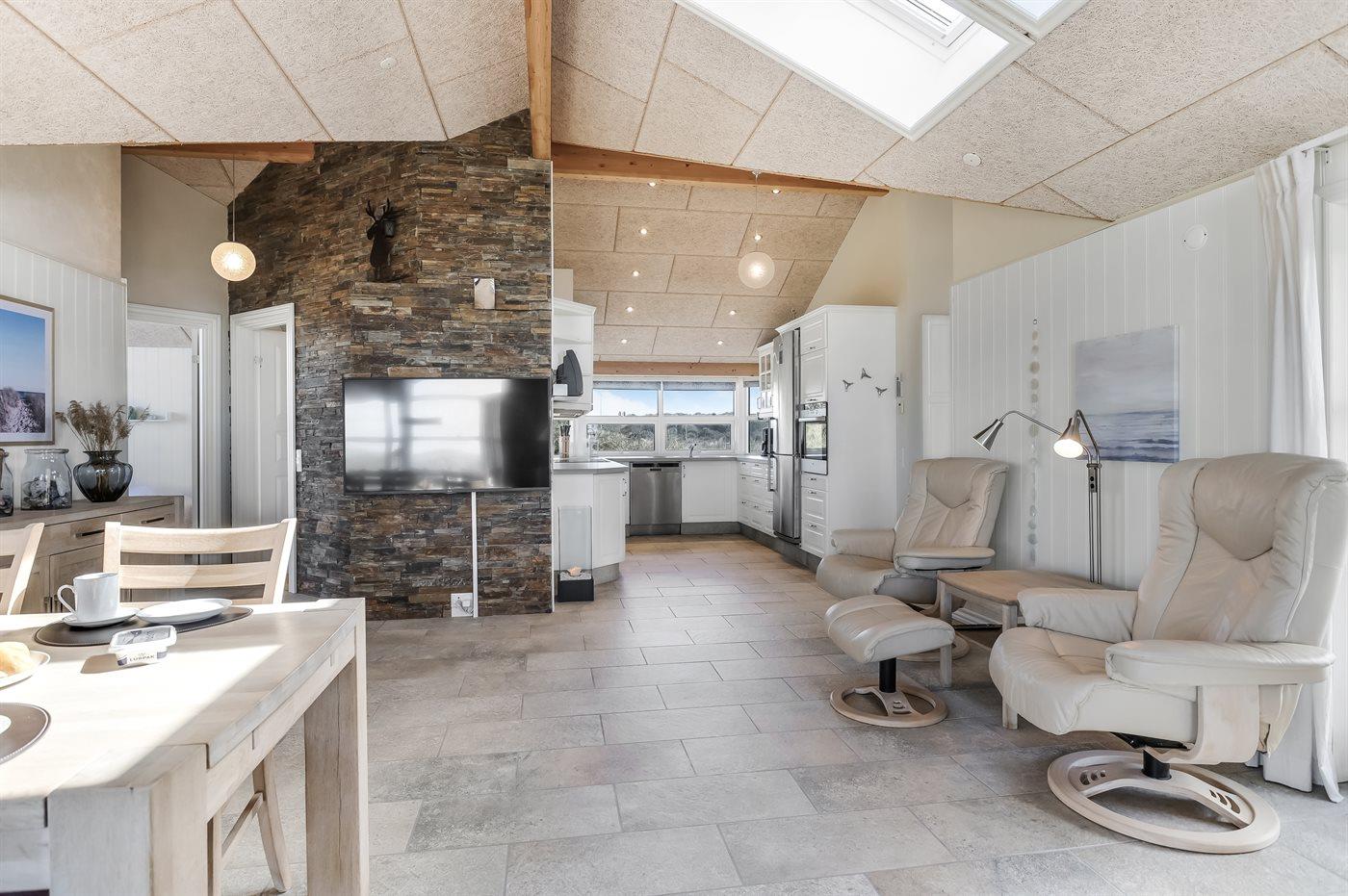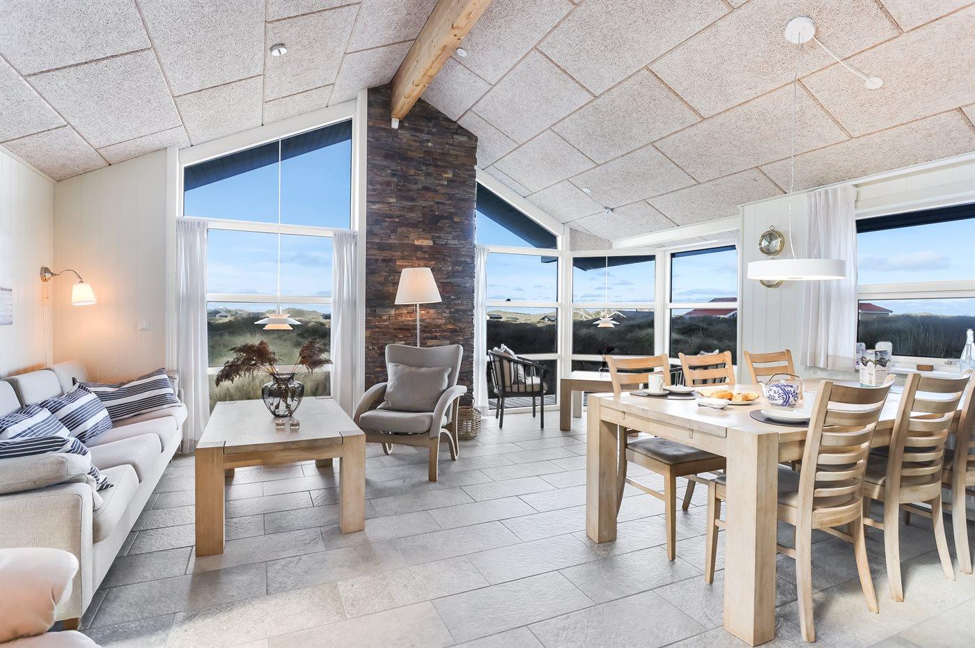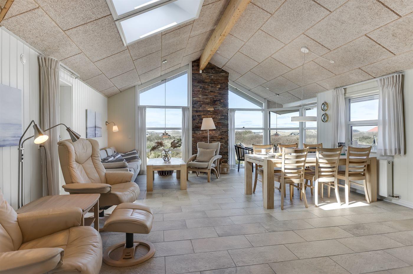 Hele vejen rundt om huset findes dejlige terrassearealer, og på grunden kan man sidde frit og uforstyrret og nyde naturudsigten helt ned til klitterne.