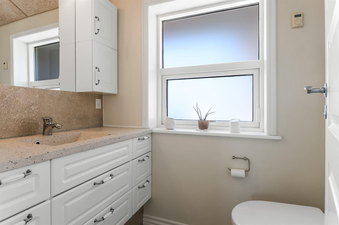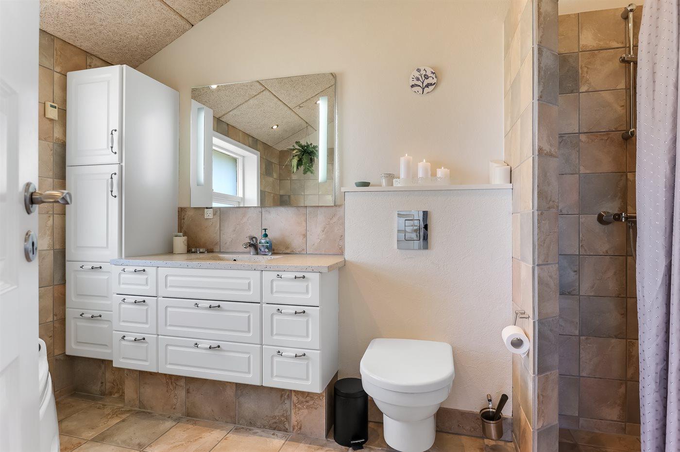 Der er 1 badeværelse med bruseniche og 2 toiletter, heraf 1 gæstetoilet. Der er gulvvarme på 1 badeværelse. Der er gulvvarme på gæstetoilettet.