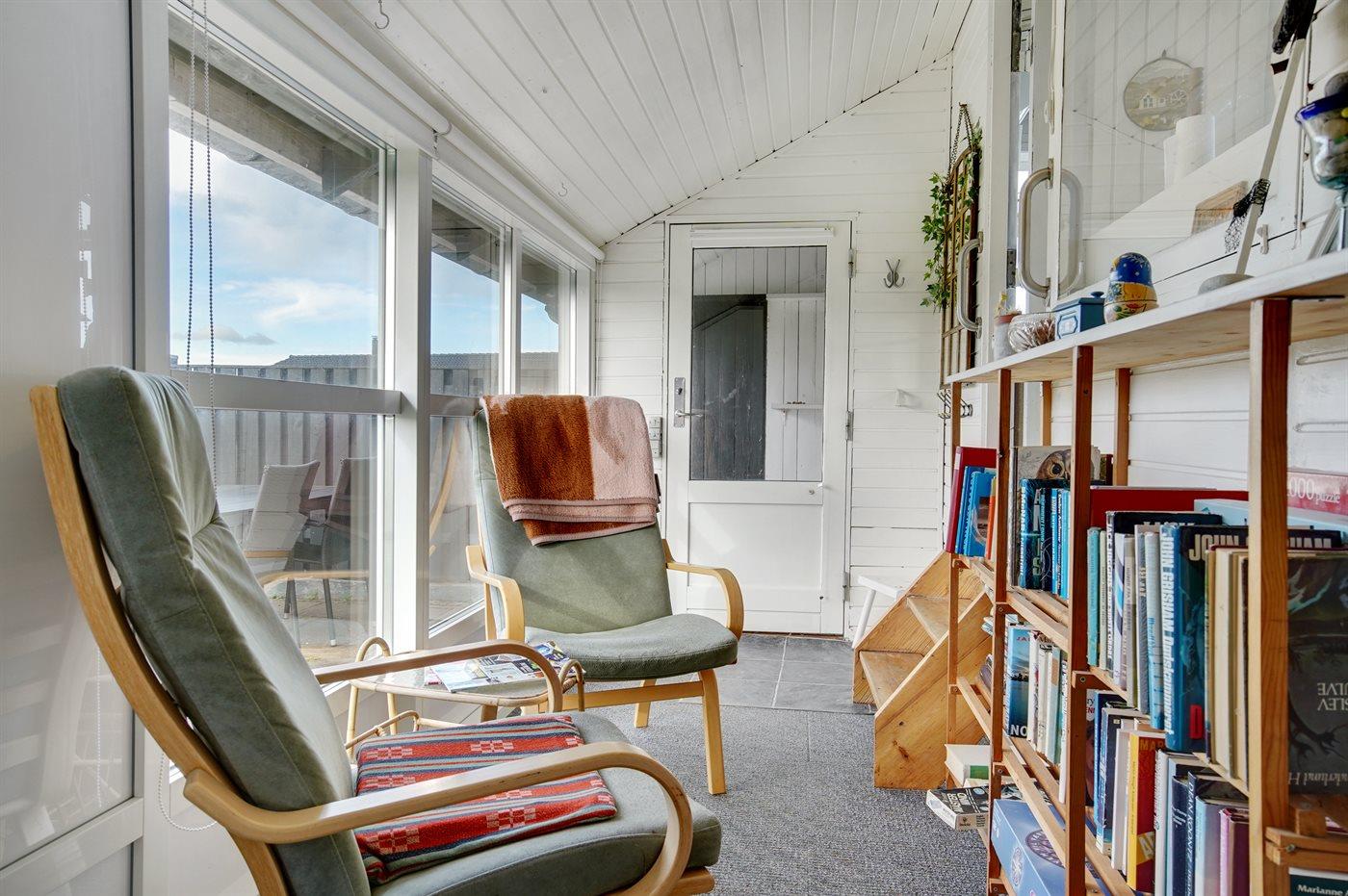 Hyggeligt lille sommerhus med havudsigt beliggende tæt på stranden og Vesterhavet i flot natur og tæt på aktivitetscenter med badeland og sportsaktiviteter. Til huset hører et anneks, hvor 2 af sovepladserne befinder sig.
