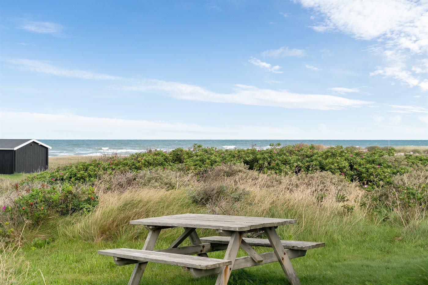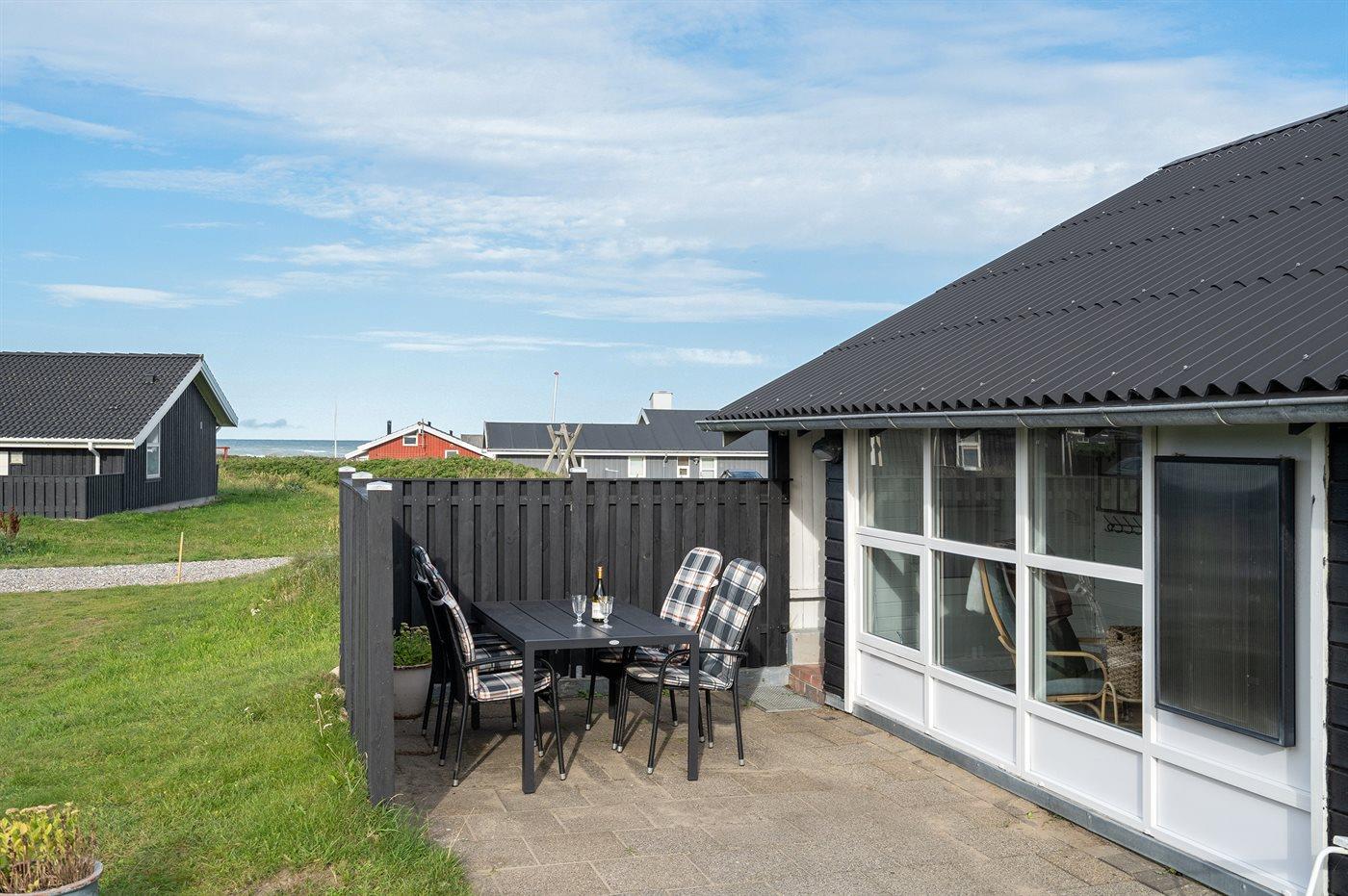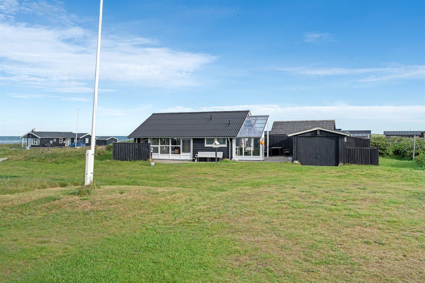 Ferieboligen er beliggende på en 1200 m² stor klitgrund. Der er 140 m til havet. Nærmeste forretning er beliggende i en afstand af 1500 m. Til ferieboligen hører 15 m² terrasseareal. Desuden er der 5 m² overdækket terrasse. Grill til rådighed. Parkering ved ferieboligen.