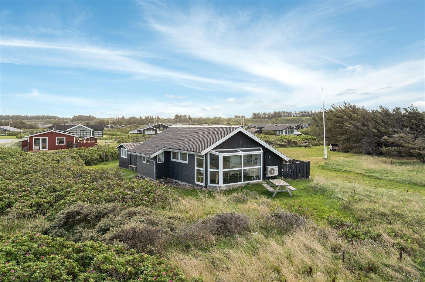 Hyggeligt sommerhus med havudsigt tæt på Vesterhavet og aktivitetscenter i flot natur.