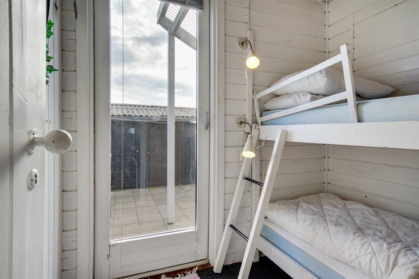 Der er i alt 2 soveværelser. Sovepladserne fordeler sig på: 2 sovepladser i dobbeltseng. 2 sovepladser i køjeseng.