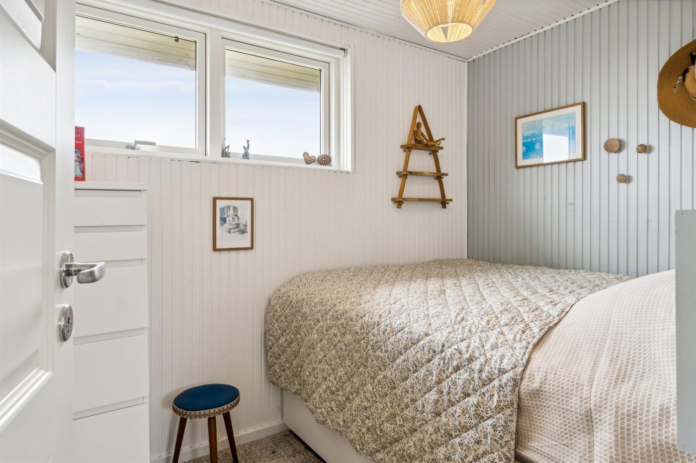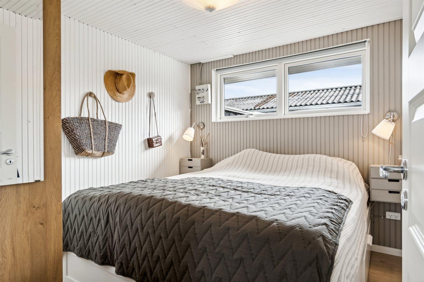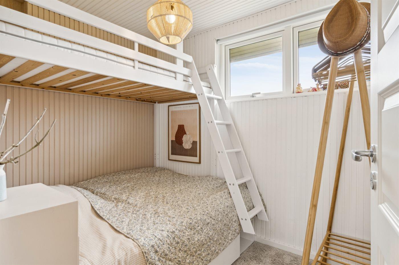 Der er i alt 3 soveværelser. Sovepladserne fordeler sig på: 2 sovepladser i dobbeltseng. 2 sovepladser i køjeseng. 2 sovepladser i sovesofa (dobbelt). Derudover er der 1 stk. barneseng.