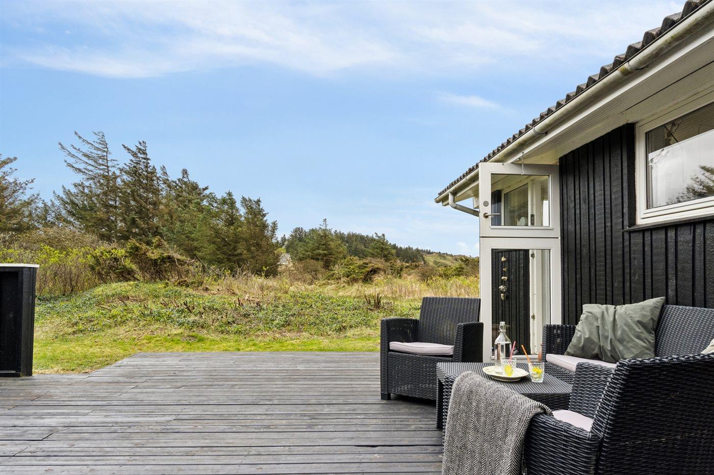 Ferieboligen er beliggende på en 2350 m² stor naturgrund. Der er 600 m til havet. Nærmeste forretning er beliggende i en afstand af 2300 m. Til ferieboligen hører åbent terrasseareal. Grill til rådighed. Parkering ved ferieboligen.