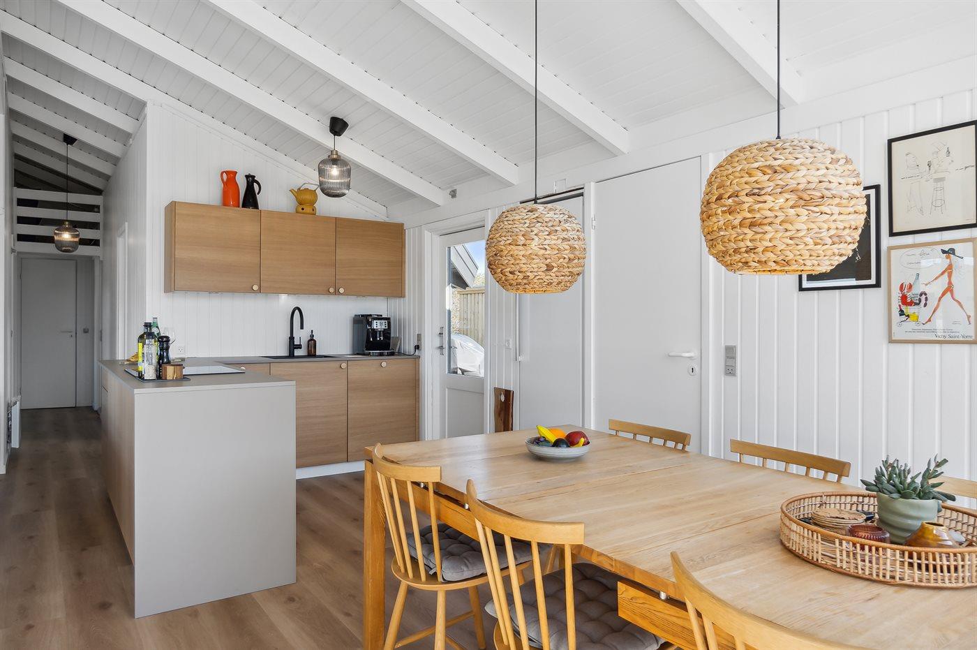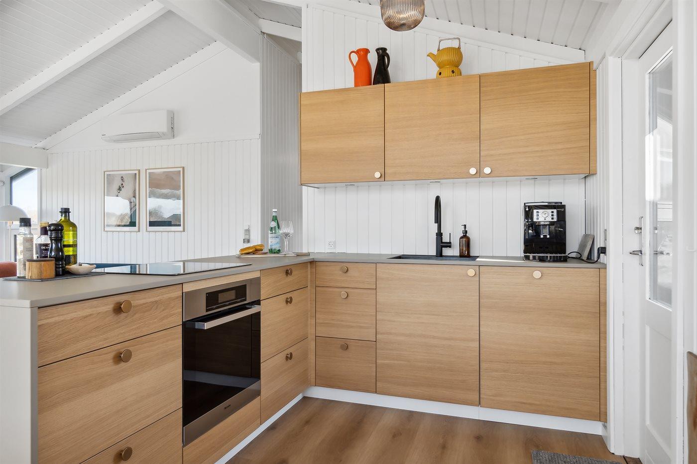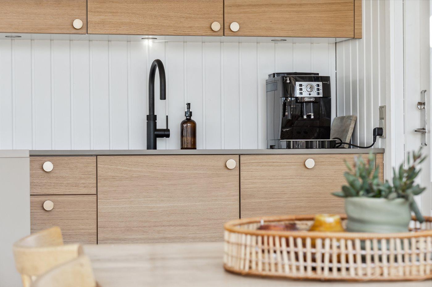 Køkkenet er udstyret med 1 køleskab. Der er 4 keramiske kogeplader, varmluftovn samt opvaskemaskine Espressomaskine.