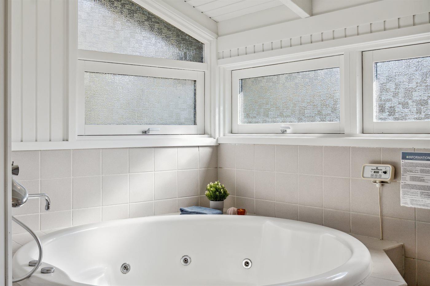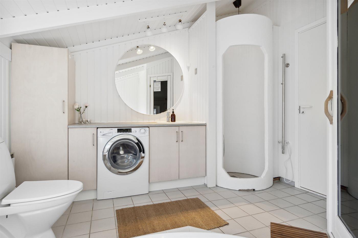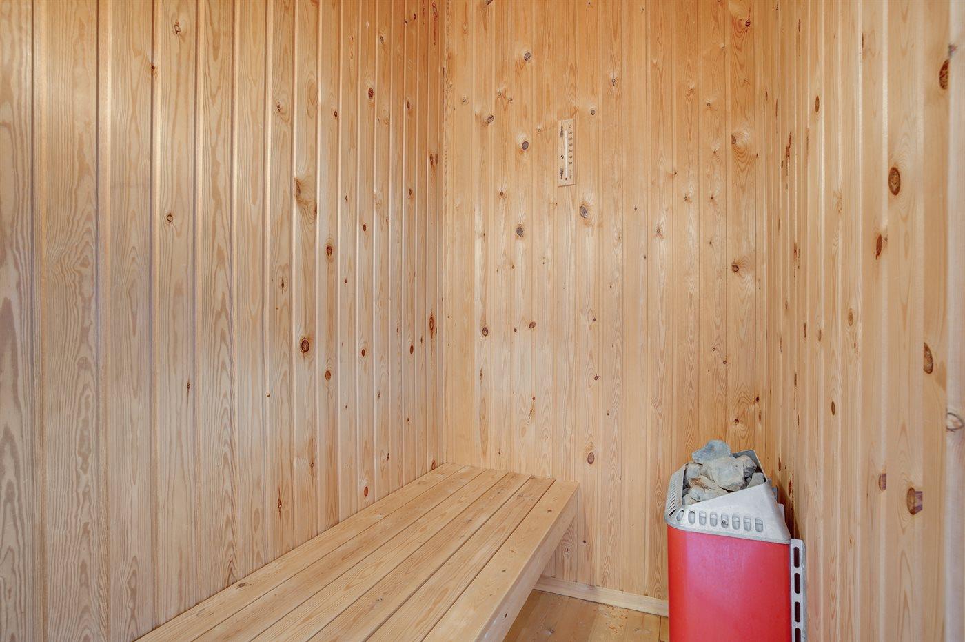 Der er 2 badeværelser med bruseniche og 2 toiletter. Der er gulvvarme på 1 badeværelse. I saunaen er der mulighed for afslapning.