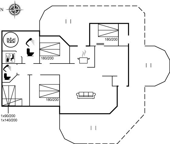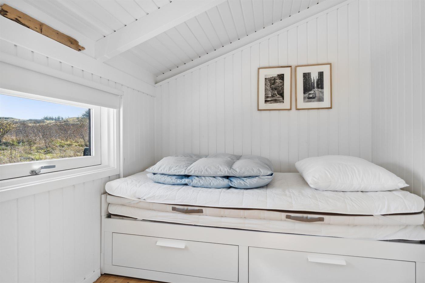 Der er i alt 4 soveværelser. Sovepladserne fordeler sig på: 6 sovepladser i dobbeltsenge. 3 sovepladser i køjesenge. 2 sovepladser på madrasser. 2 af disse sovepladser befinder sig på husets hems.