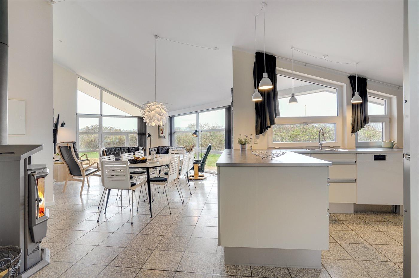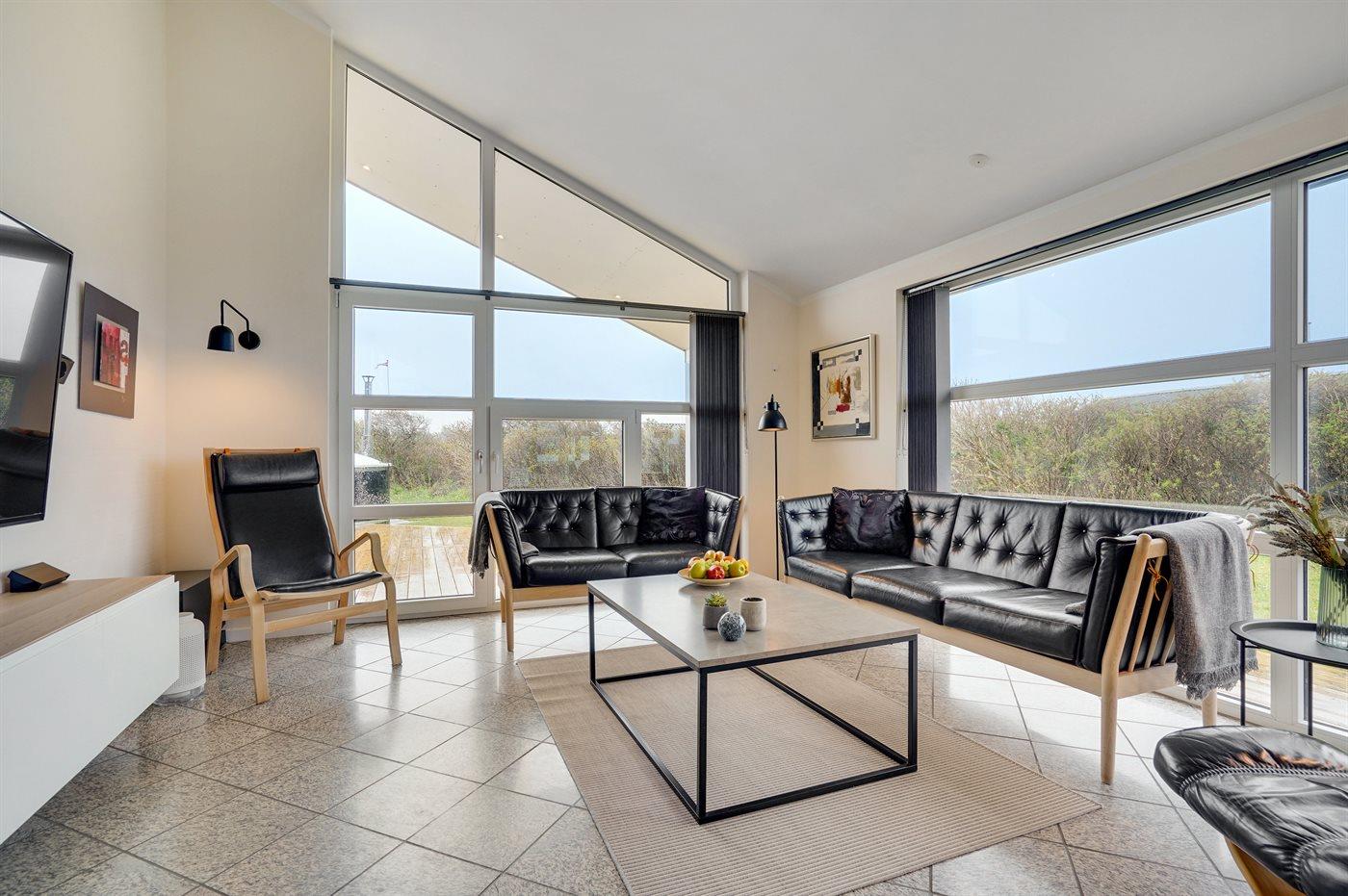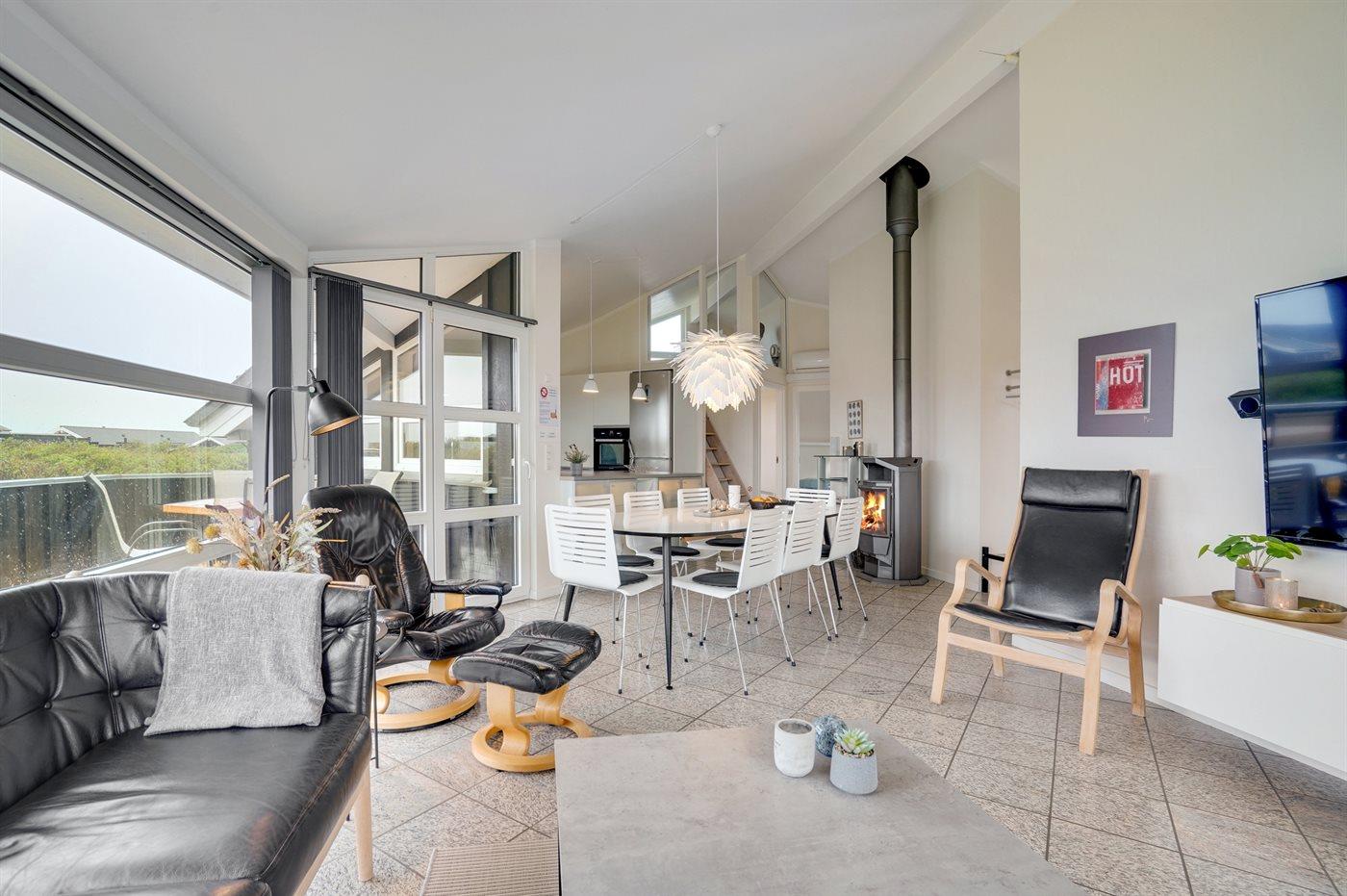 Dejligt sommerhus beliggende i flot natur tæt på Vesterhavet og dejlig badestrand. Til huset hører skønne terrasser samt et vildmarkskar, som kan benyttes hele året. Lige i nærheden ligger et stort ferieresort med aktivitetsmuligheder for hele familien som bl.a. tropisk badeland, romersk bad, indkøb, bowling, restaurant og et væld af sportsaktiviteter.