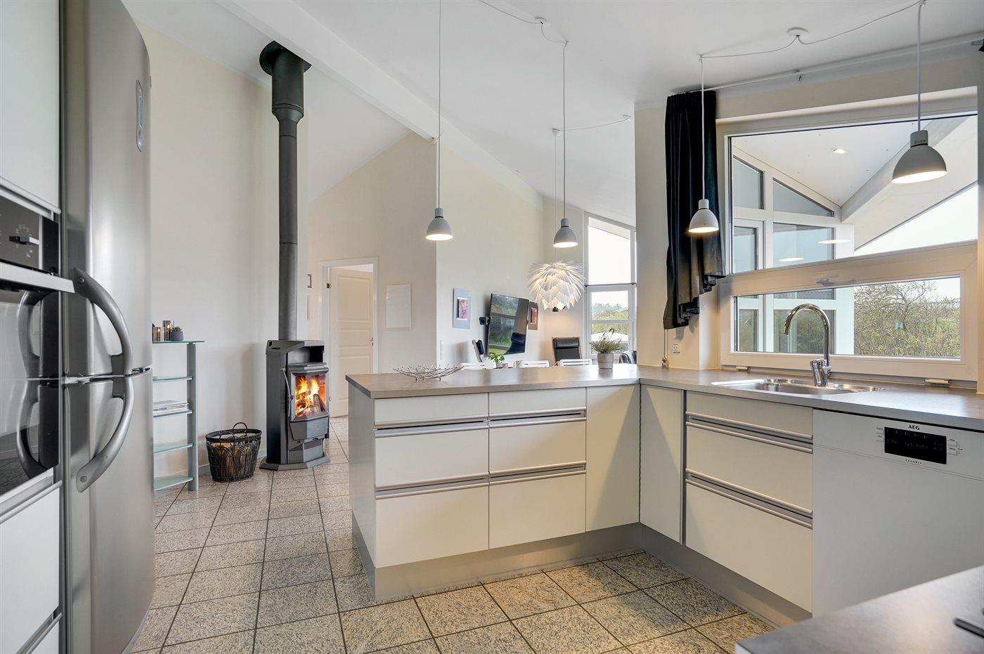 Køkkenet er udstyret med 1 køleskab. Der er 4 keramiske kogeplader, varmluftovn, mikrobølgeovn samt opvaskemaskine.