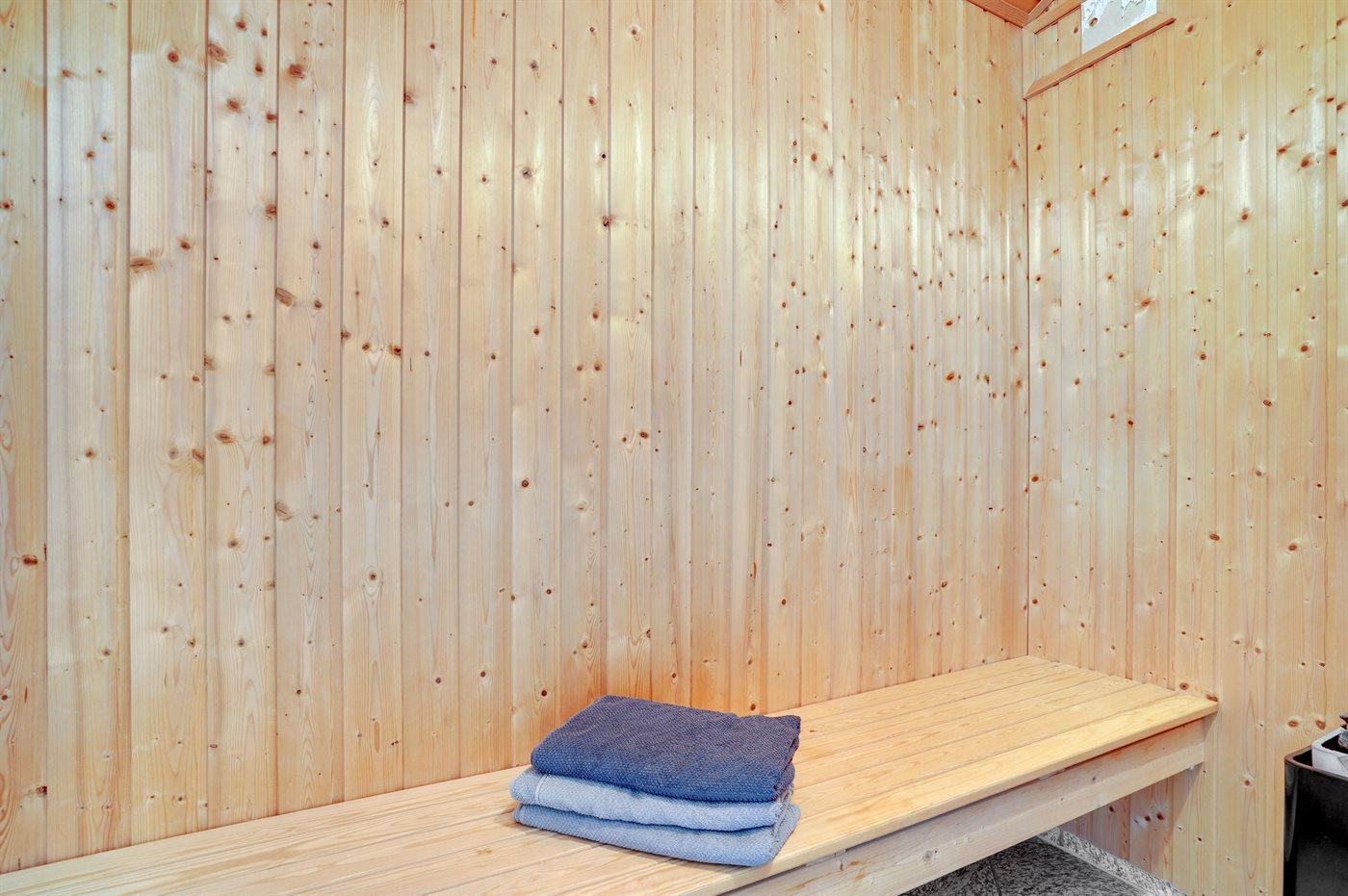 Der er 2 badeværelser med bruseniche og 2 toiletter. Der er gulvvarme på 2 badeværelser. I saunaen er der mulighed for afslapning.