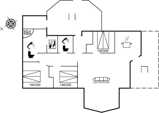 Der er i alt 3 soveværelser. Sovepladserne fordeler sig på: 6 sovepladser i dobbeltsenge. Jensen Boxmadrasser.