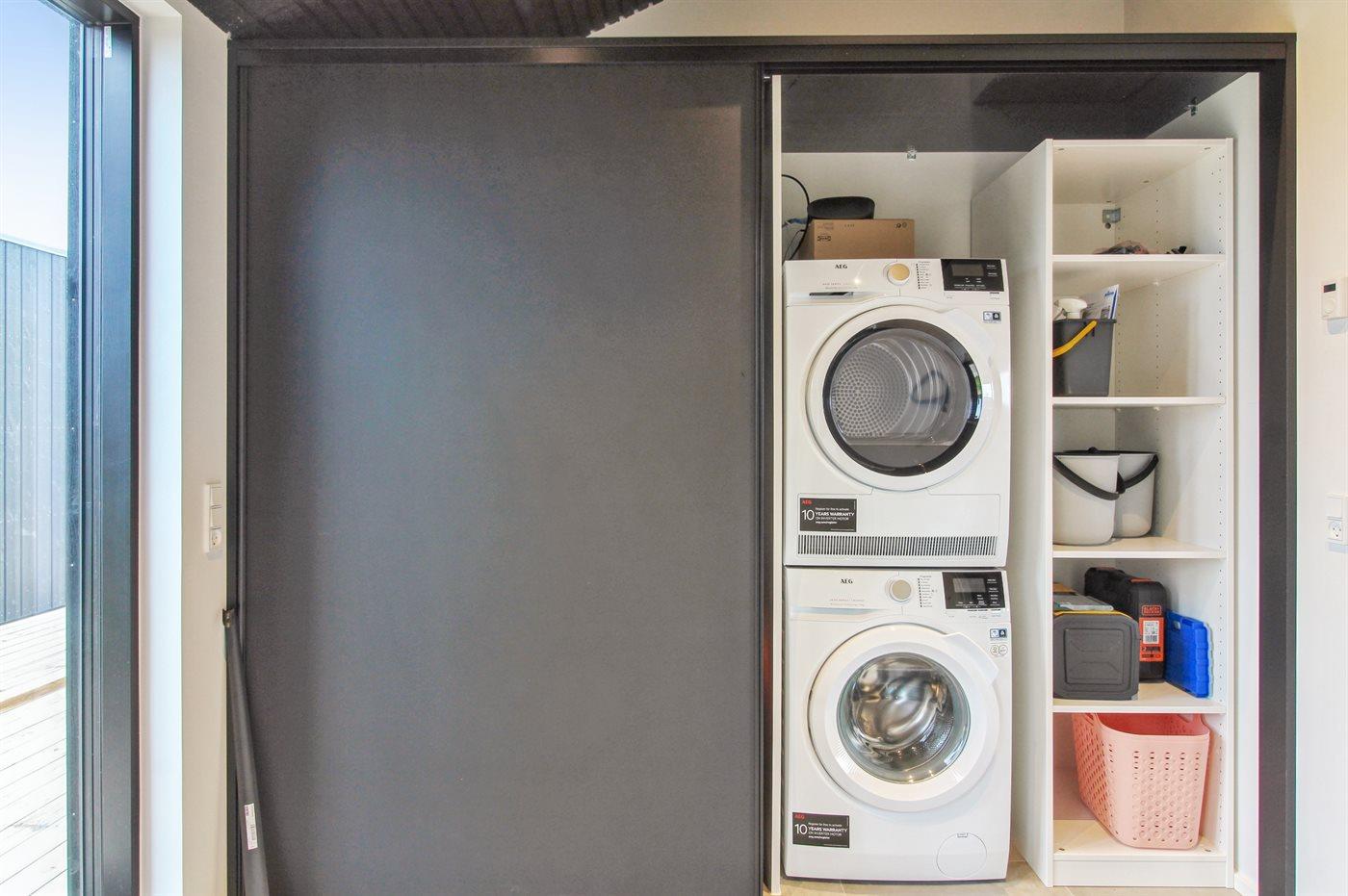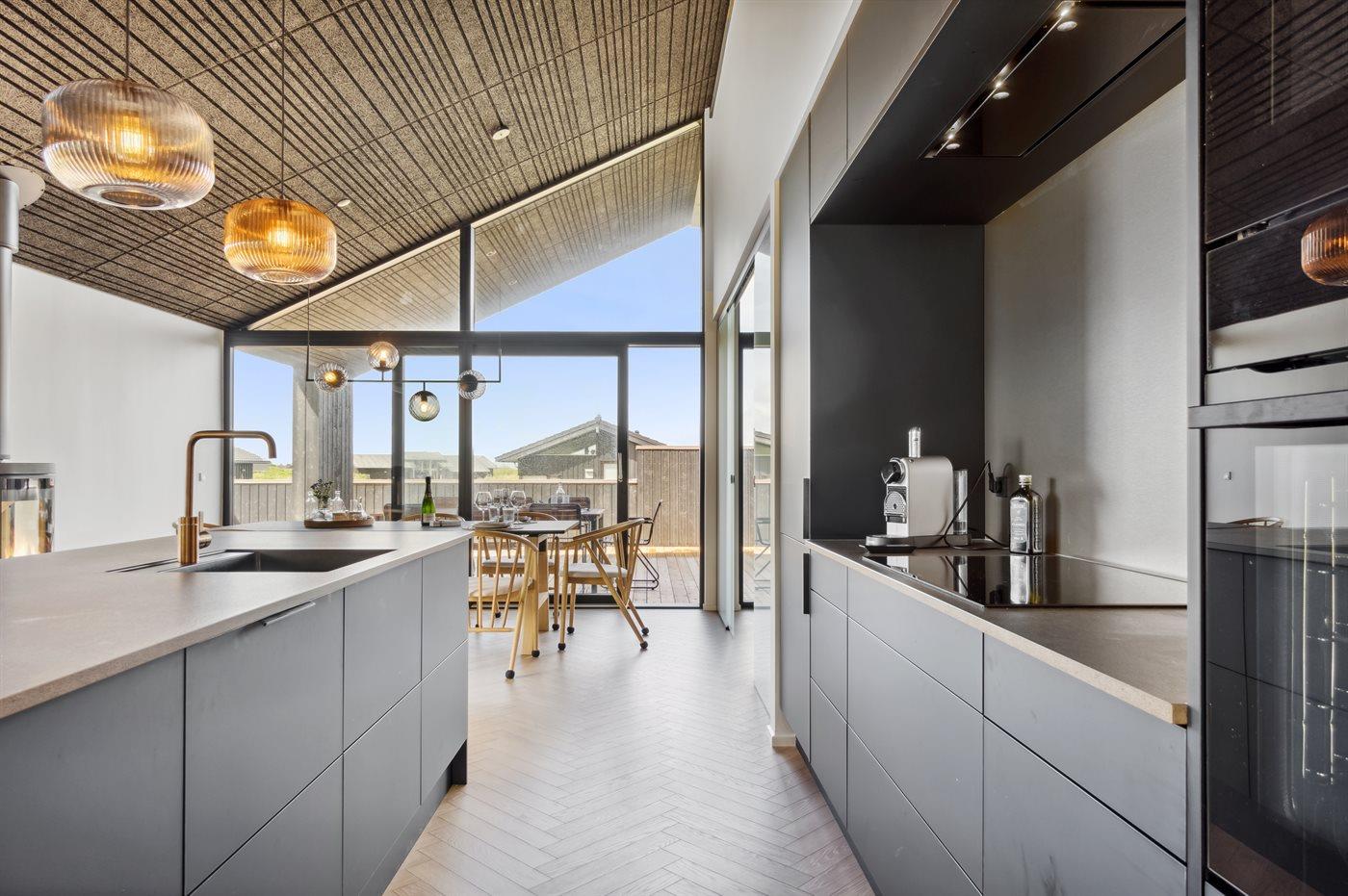 Køkkenet er udstyret med 1 køleskab. Der er 4 keramiske kogeplader, varmluftovn, mikrobølgeovn samt opvaskemaskine.