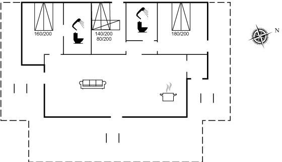 Der er 2 badeværelser med bruseniche og 2 toiletter. Der er gulvvarme på 2 badeværelser.