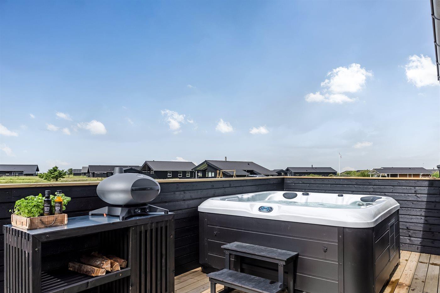 Der er mulighed for afslapning i udendørs standvandsspa til 7 personer.