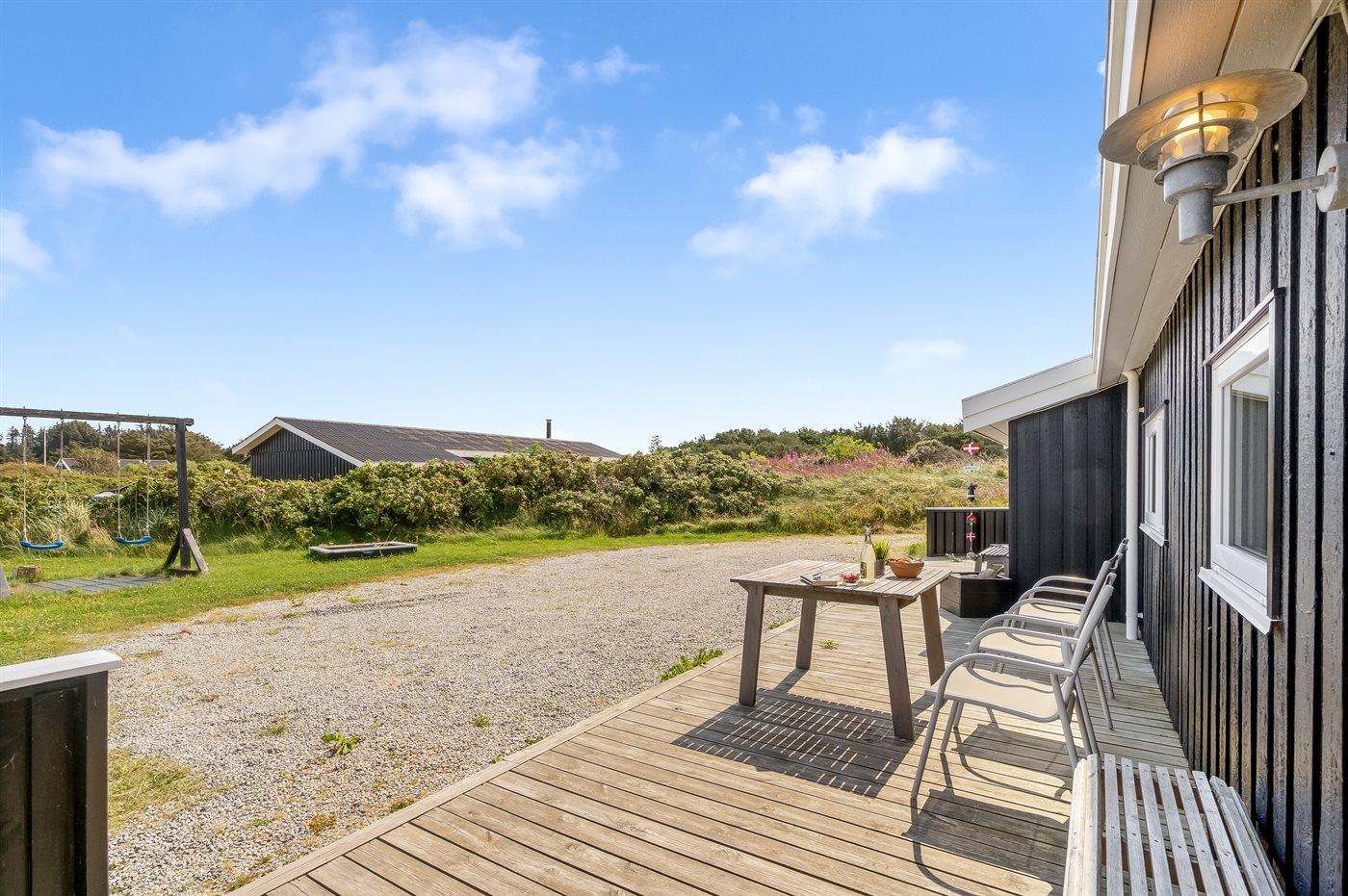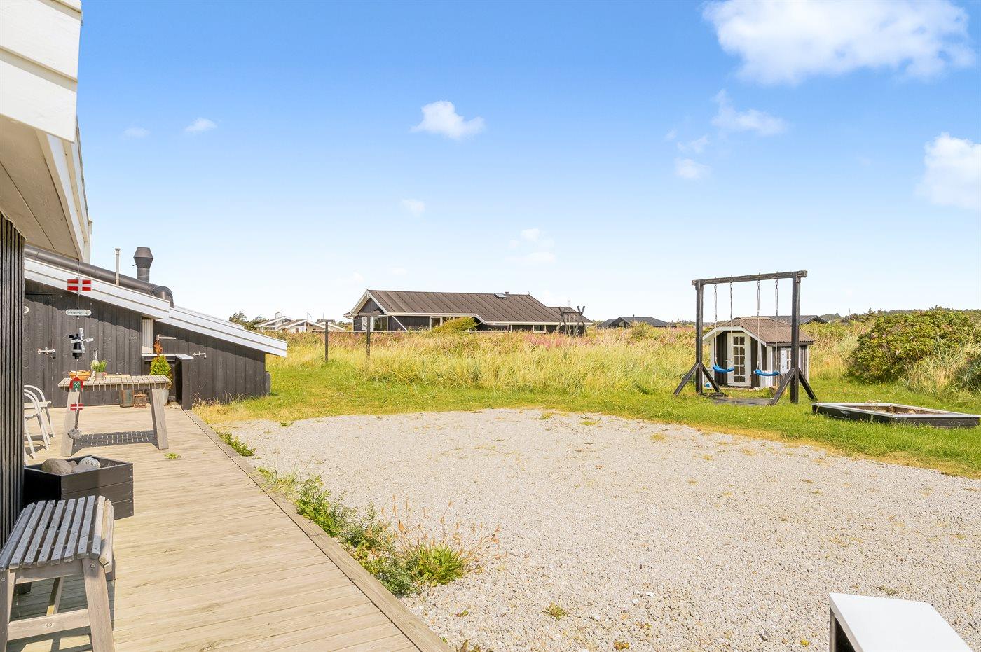 Ferieboligen er beliggende på en 1800 m² stor naturgrund. Der er 425 m til havet. Nærmeste forretning er beliggende i en afstand af 500 m. Til ferieboligen hører åbent terrasseareal. Gynge. Sandkasse. Grill til rådighed. Parkering ved ferieboligen.